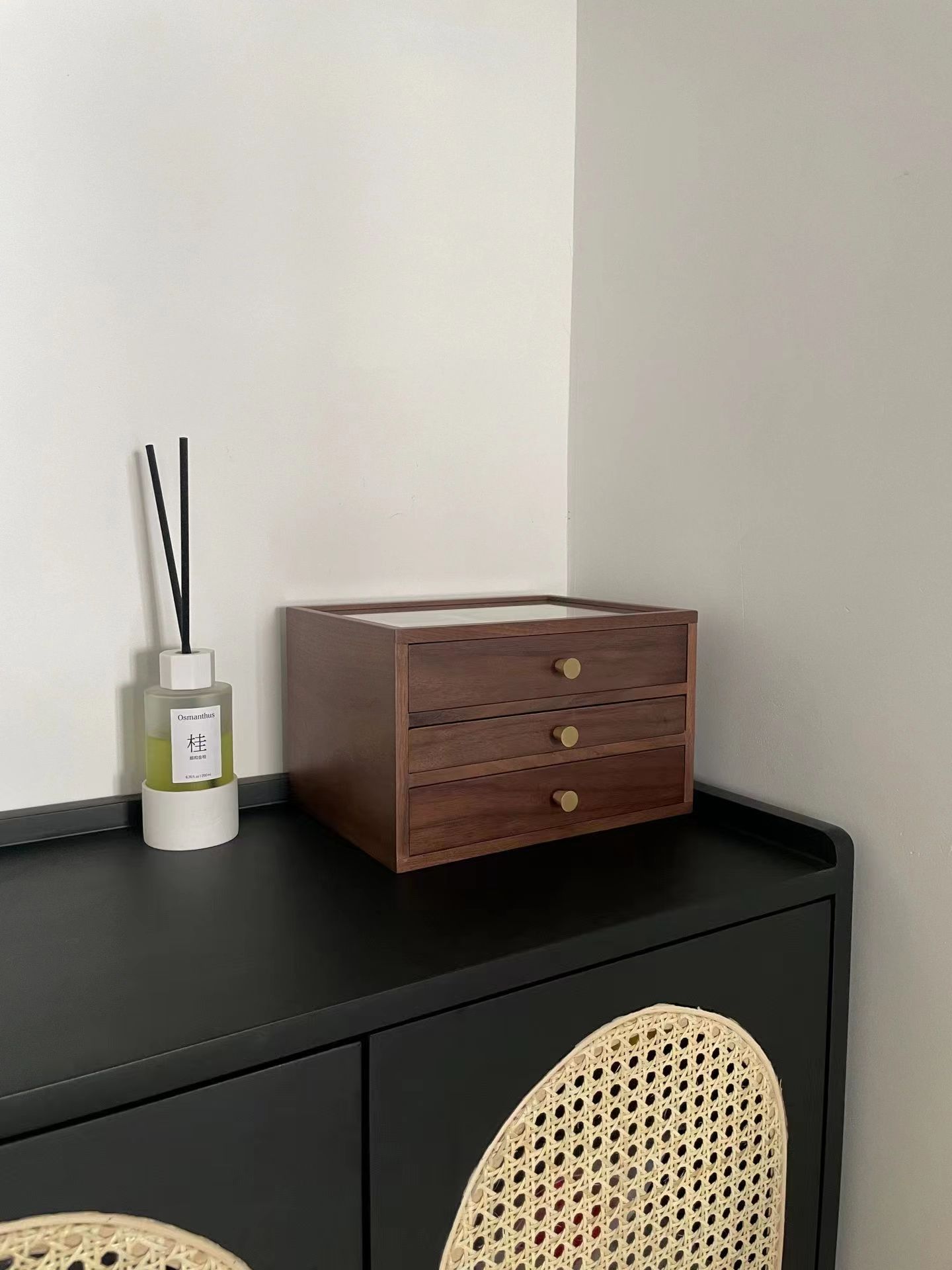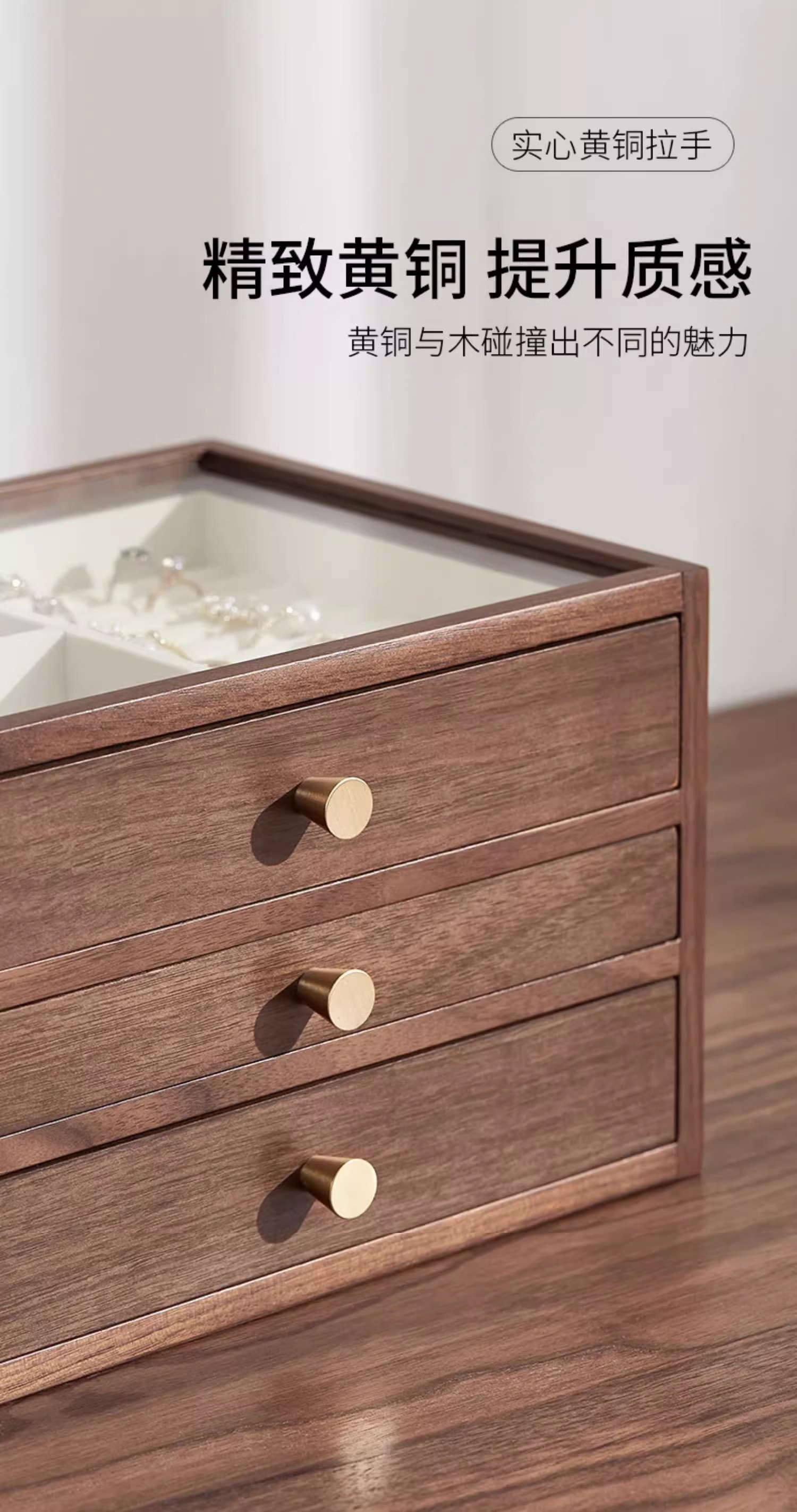 ✔️实木桐木+通透玻璃+精致黄铜材质