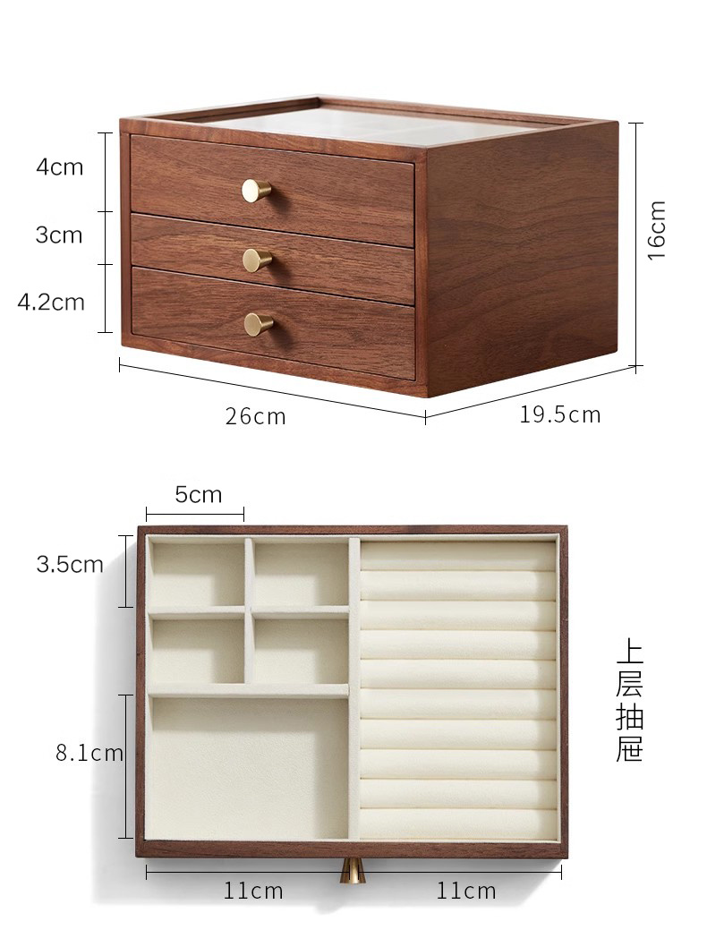 三层首饰盒:26*19.5*16cm