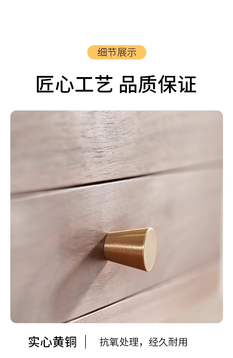 实心黄铜拉手,抗氧化拉丝工艺,颜色经久不变。