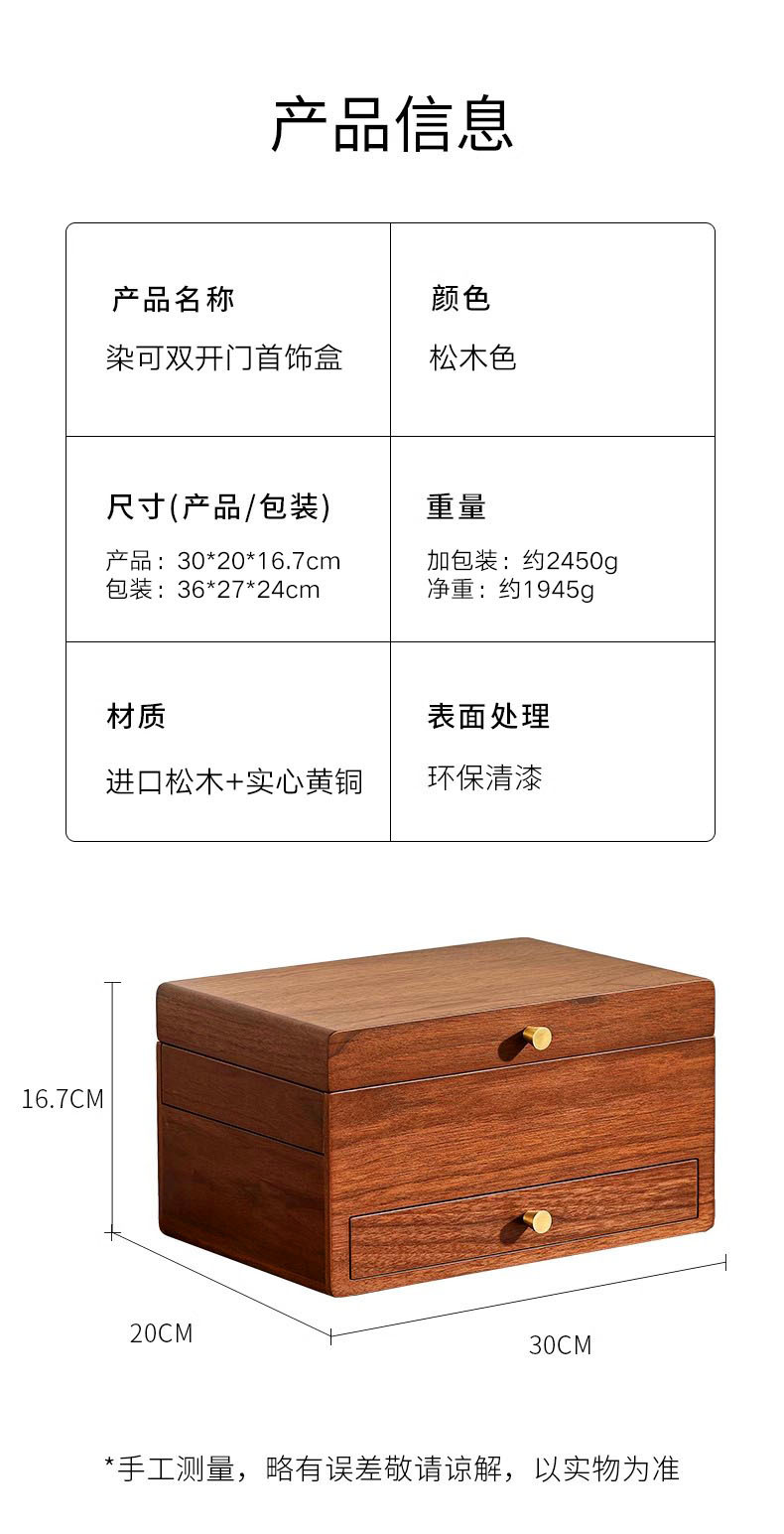 双开门首饰盒:进口松木+实心黄铜