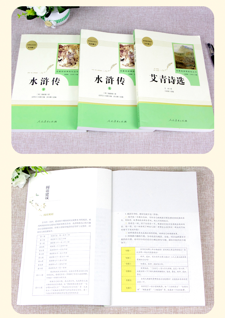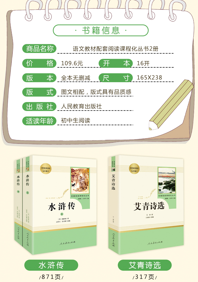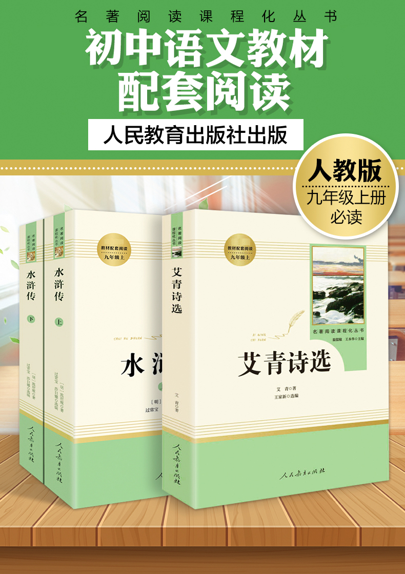艾青诗选水浒传(全套3本赠2册考点手册)书籍正版 原著 九年级必读名著 人民教育出版社无删减人教版 初三初中生文学课外书阅读青少年经典读物上册