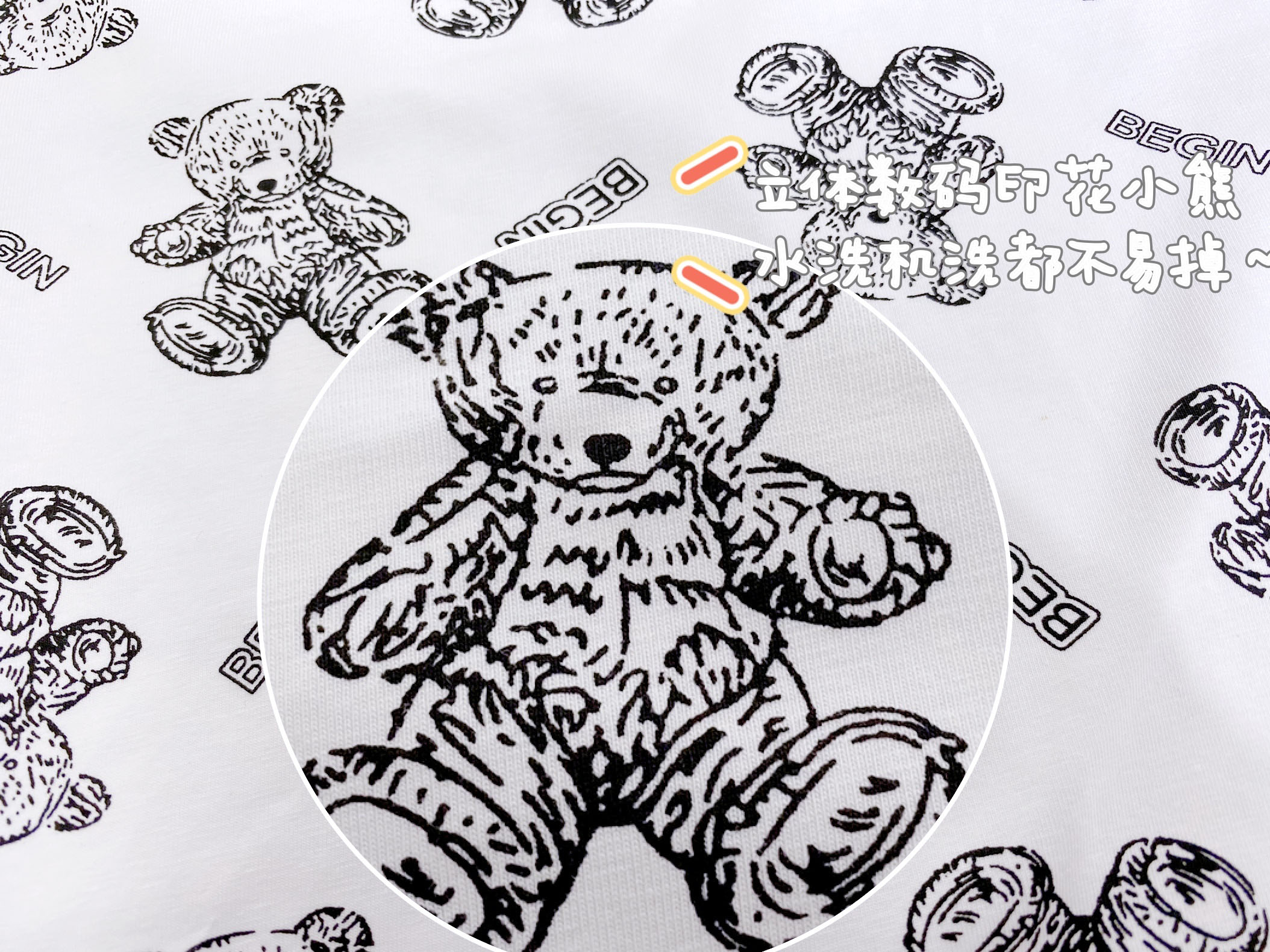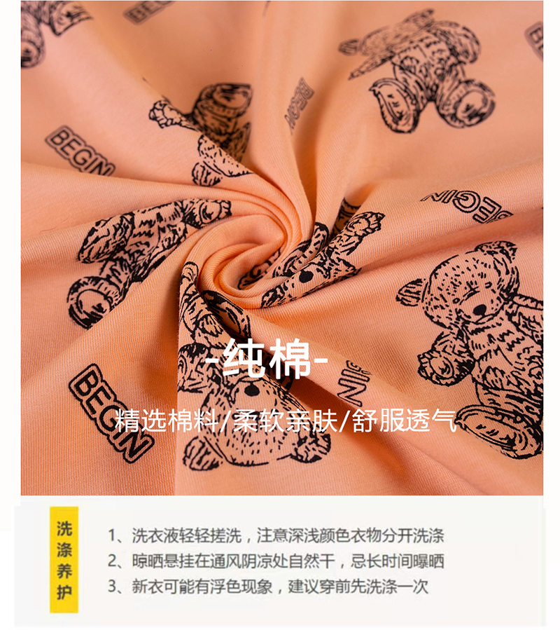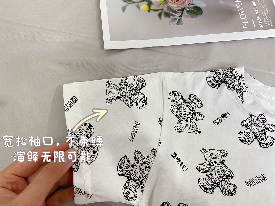 1:明亮马卡龙色系搭配小熊数码印花质感,宽松落肩版型,好穿不挑身材