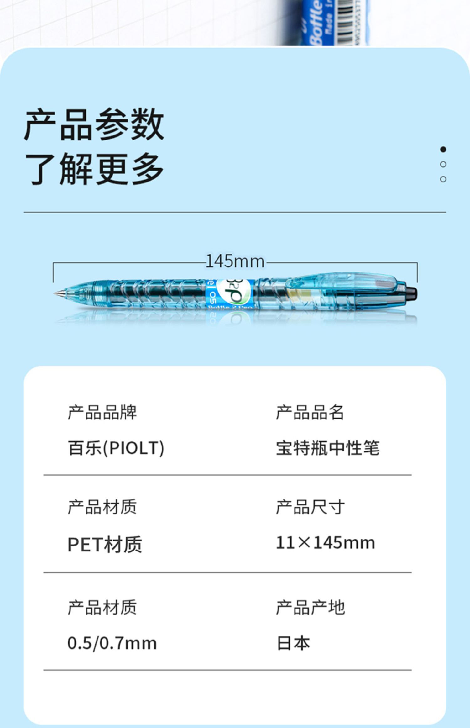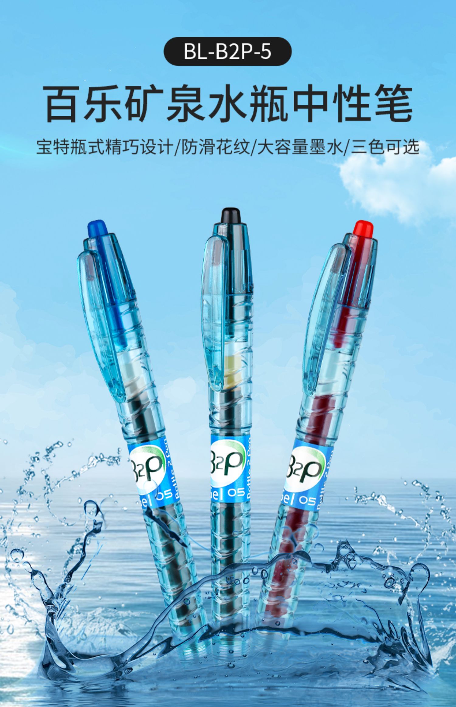 日本PILOT百乐宝特瓶b2p矿泉水笔中性笔按动式学生用专0.5mm考试用创意子弹头签字笔