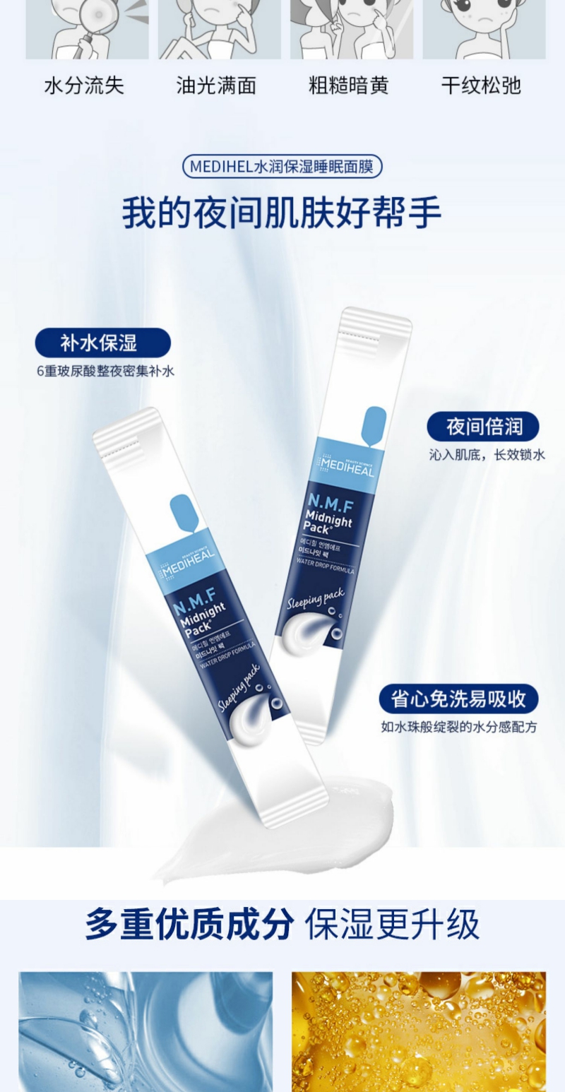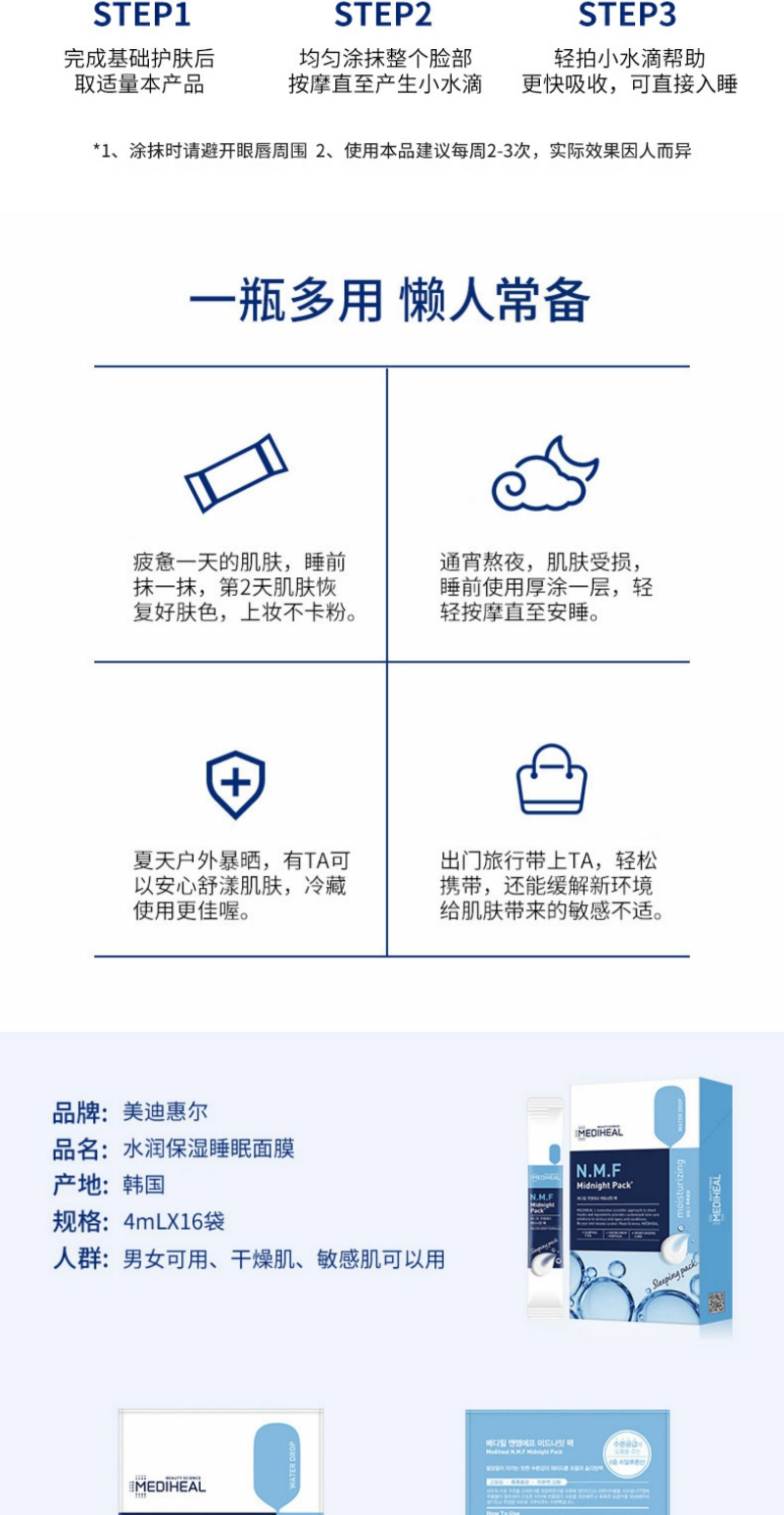 【YZ】10条/盒*2 MEDIHEAL美迪惠尔水润保湿睡眠面膜免洗补水保湿斑涂抹式