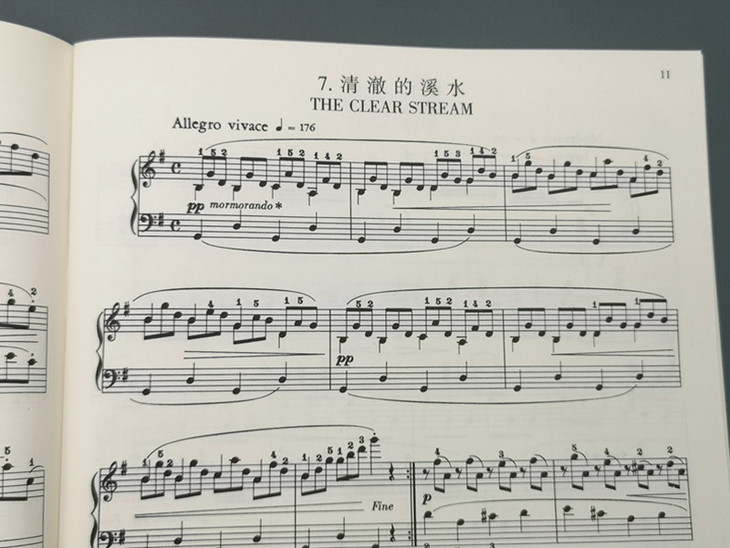 他的这本作品第100号,原名《25首流畅渐进练习曲,为年轻初学者而作》是其最负盛名的钢琴作品,它在年轻人和钢琴初学者中一直占据着很重要的一席之地,他把许多技术难题变成各种生动和引人入胜的选段来加以解决,通过这种形式,把短句划分、力度强弱和其它音乐表现等充分地展现在学生面前。