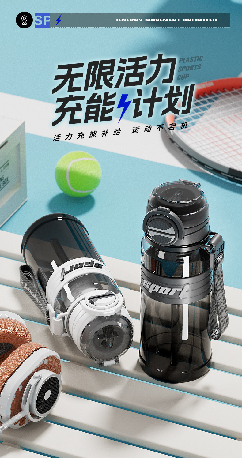 【独立茶仓!茶水轻松分离】一盖双饮,健康材质,大迈双饮吸管塑料杯高颜值大容量男士户外运动水杯弹跳水壶。ra