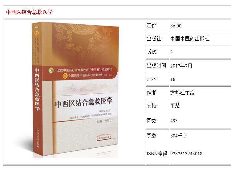 中西医结合急救医学 新世纪第3三版 全国高等中医药院校规划教材 第十10版 十三五规划教材 方邦江 供中医学针灸推拿学等专业用