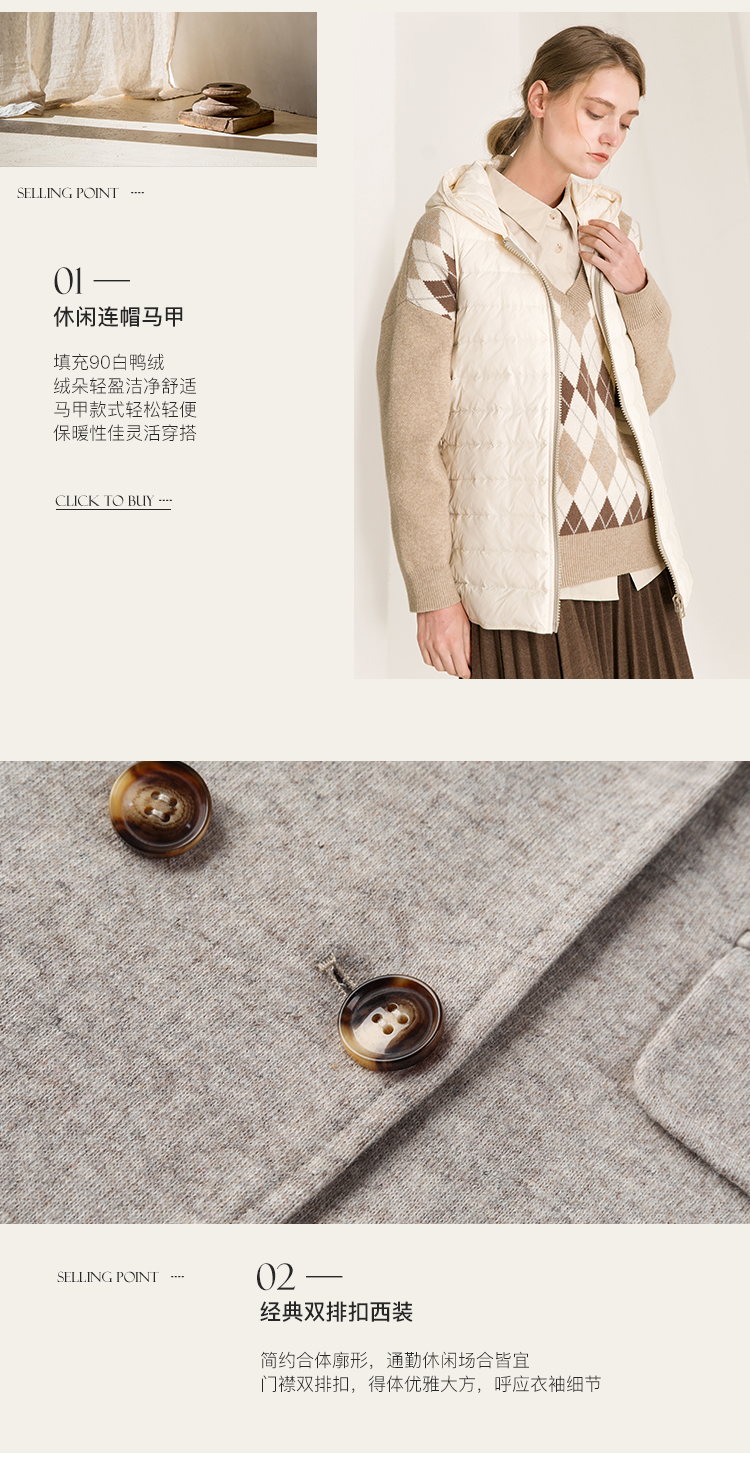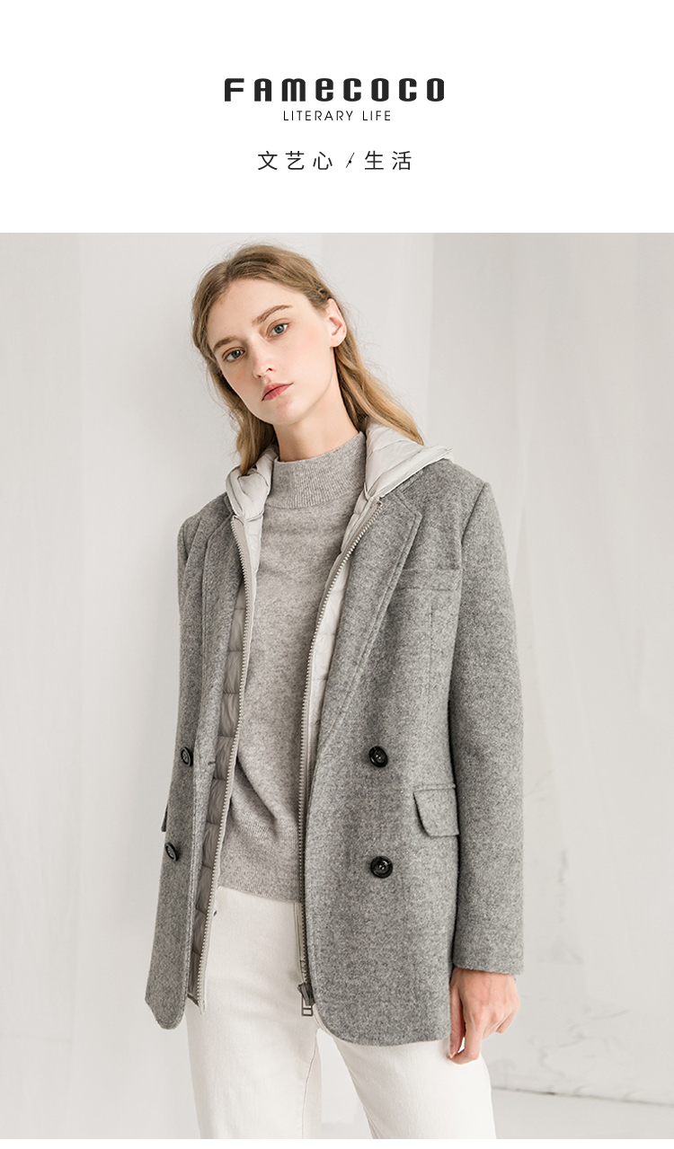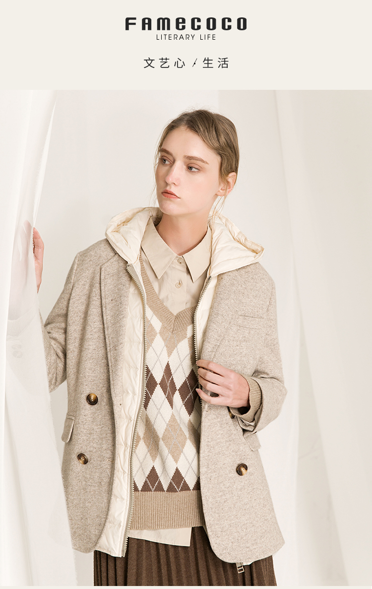 Famecoco范可儿西装羽绒服两件套冬款外套F218AJ014