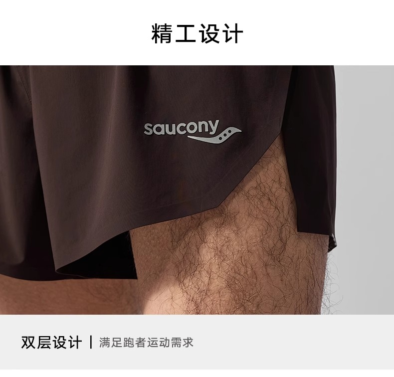 Saucony 索康尼 男款双层设计跑步运动训练舒适透气短裤