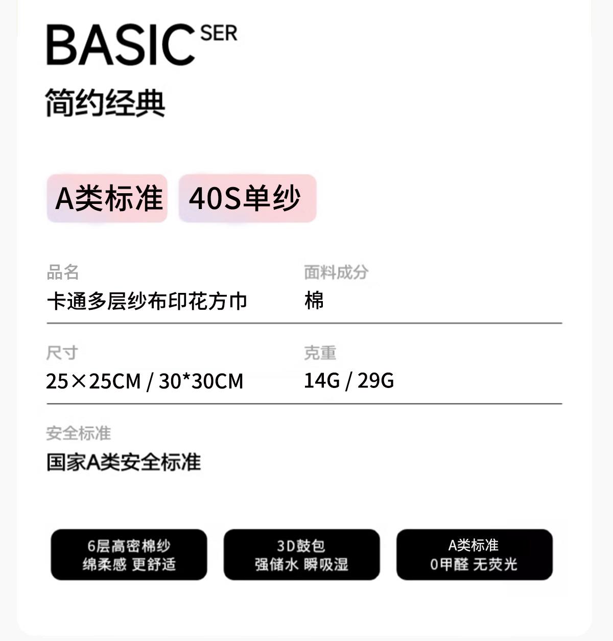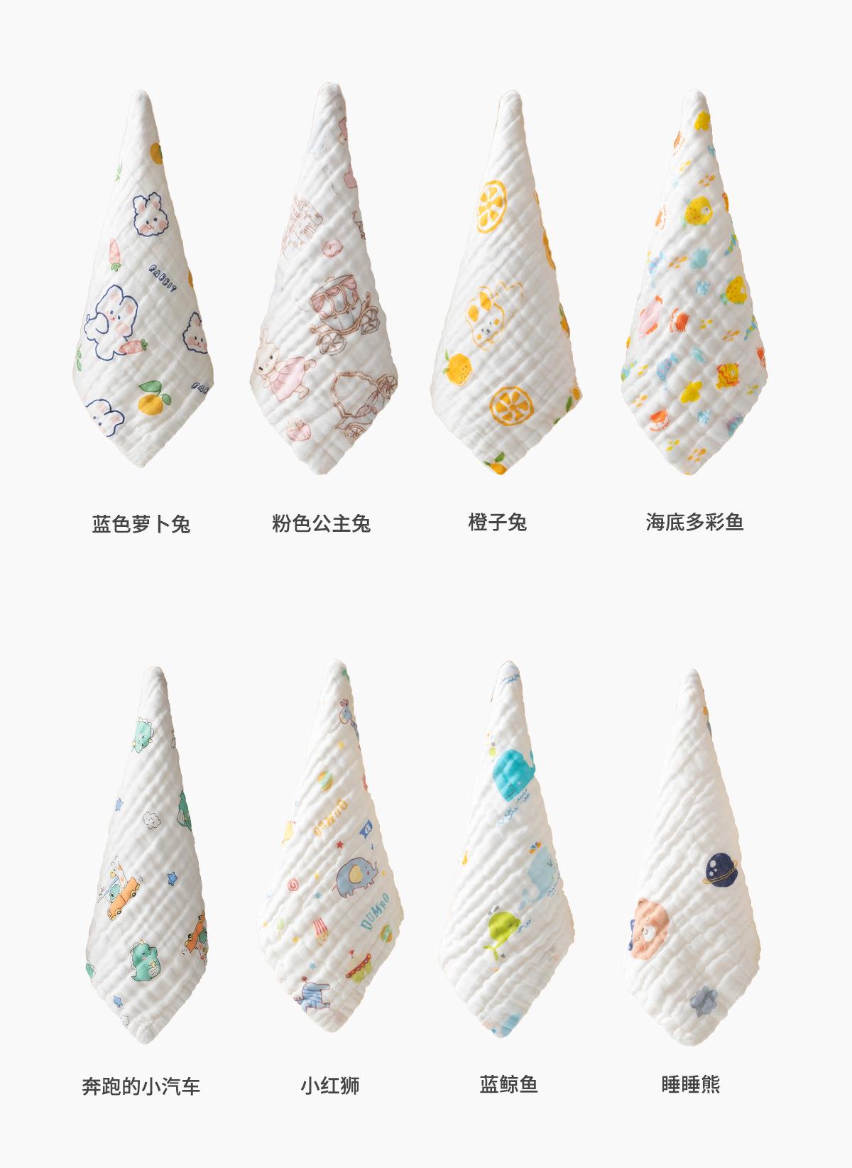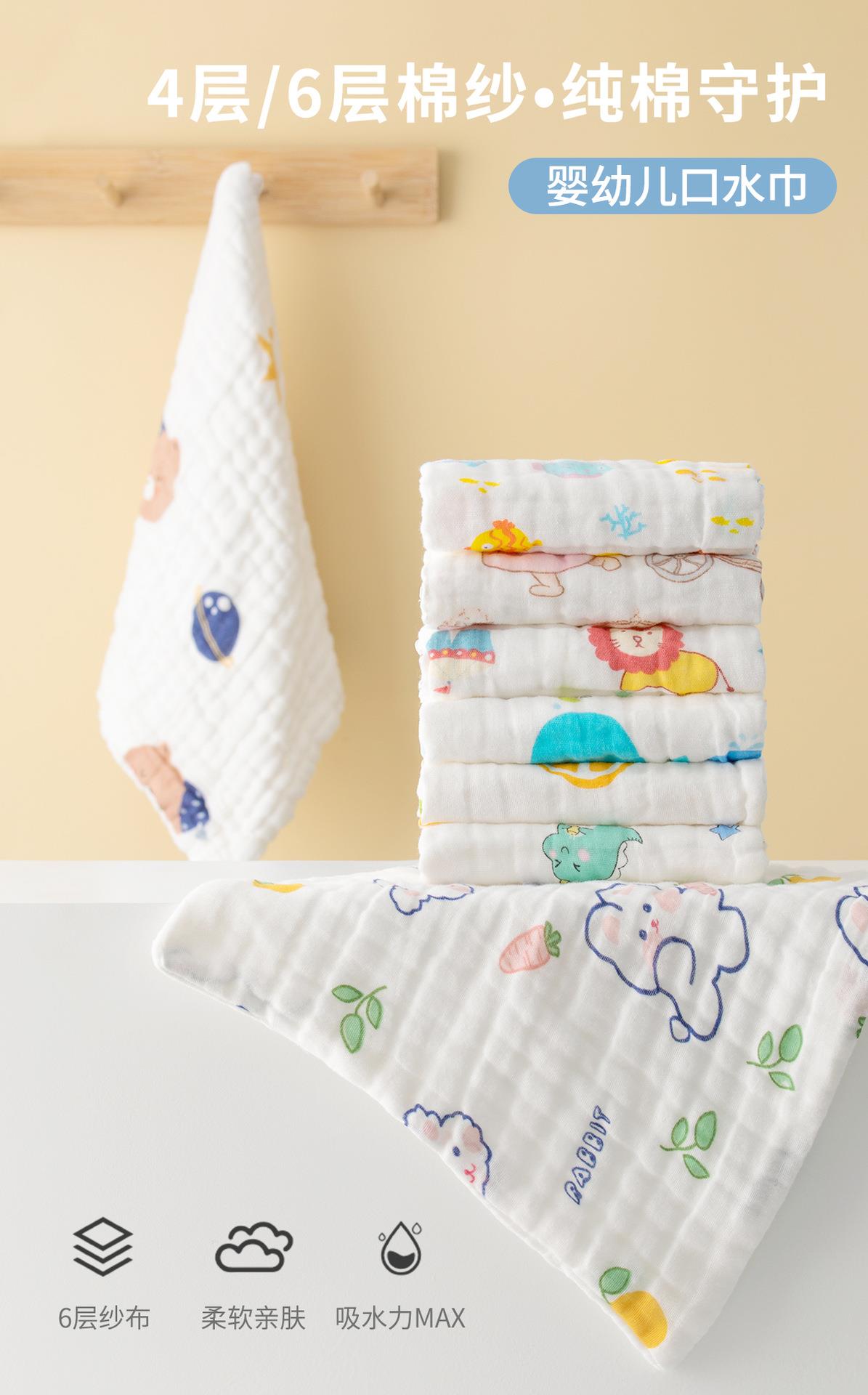 三利毛巾六层纯棉洗脸巾新生婴儿方巾4层纱布口水巾幼儿园小毛巾