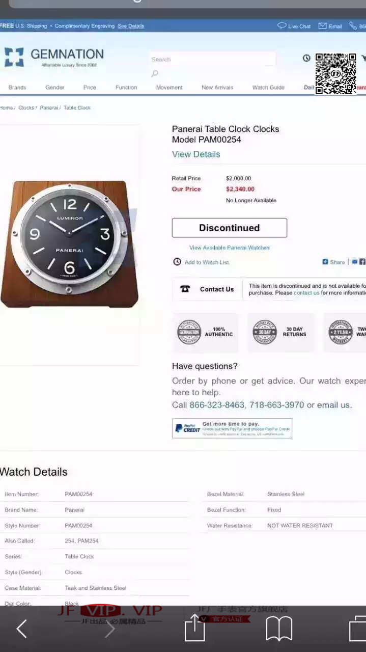 N沛纳海 PAM254 瑞士原装石英机芯 底座为15cm*15cm,厚度(最低处2cm-最高处5.8cm) 夜光 加厚亚克力玻璃