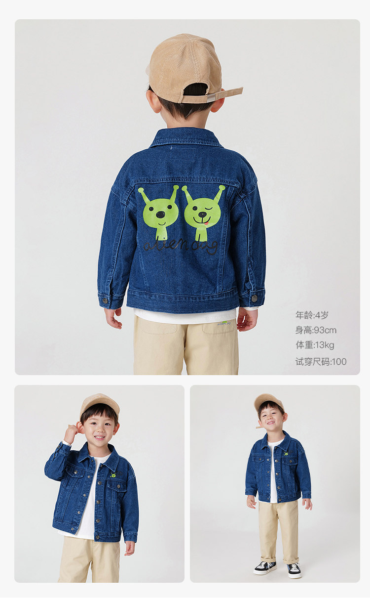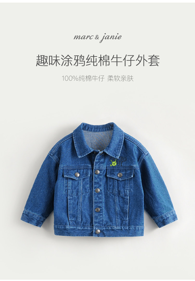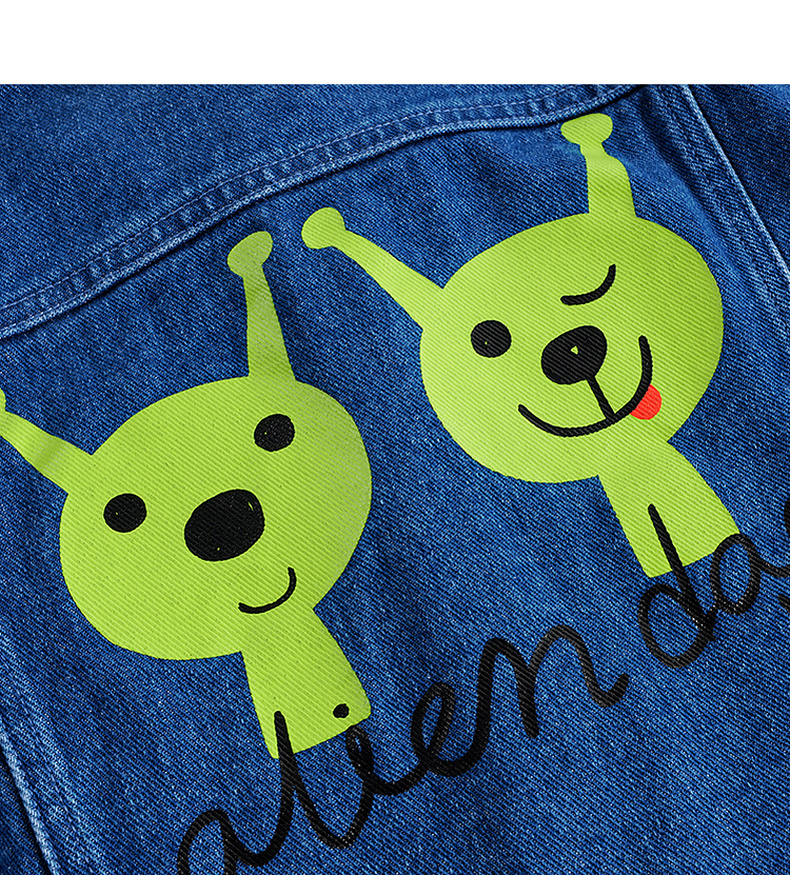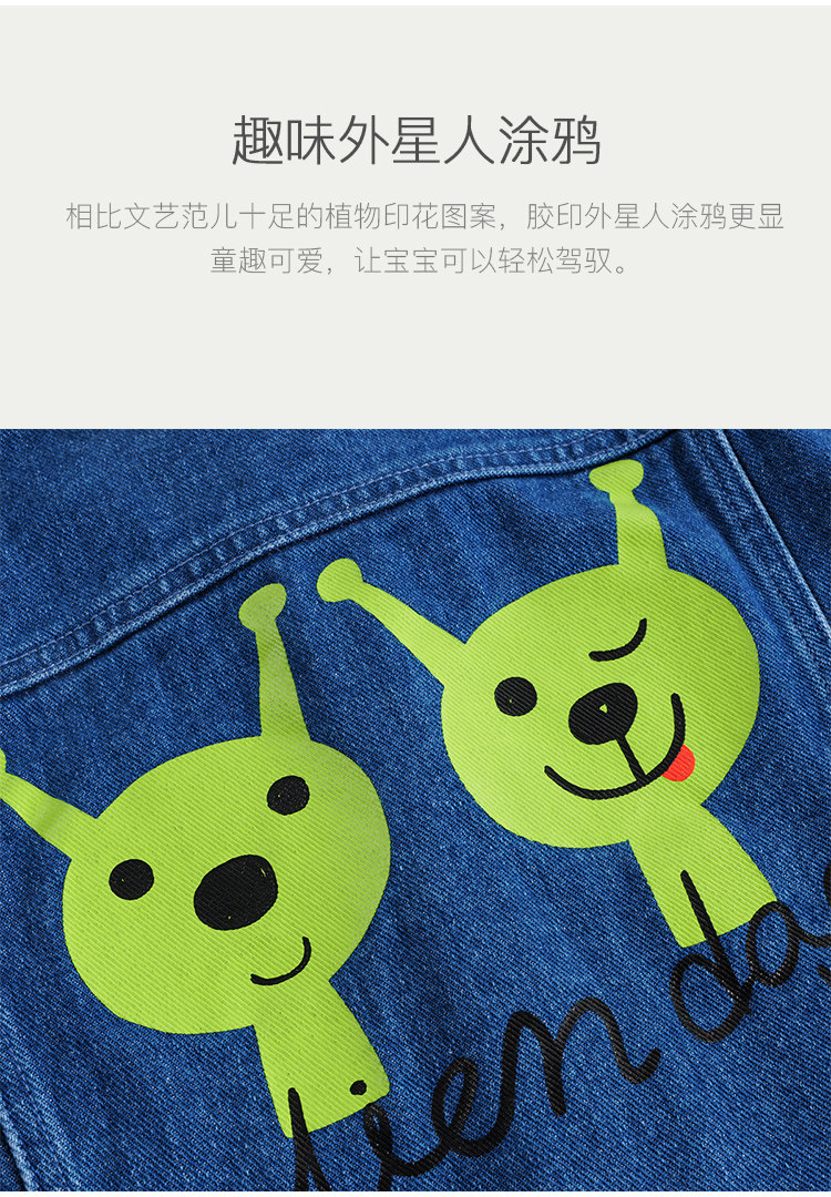 马克珍妮秋装新款 男童趣味外星人涂鸦纯棉牛仔外套231390