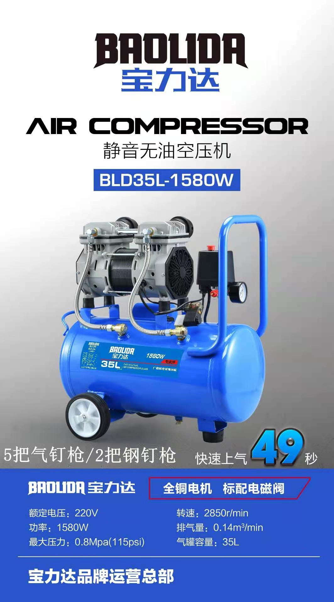 二级无油空压机,35L上气48秒,速度杠杠的,质量绝对可靠,功率1580W,(整机)发快递箱子压坏变形,不予受理。