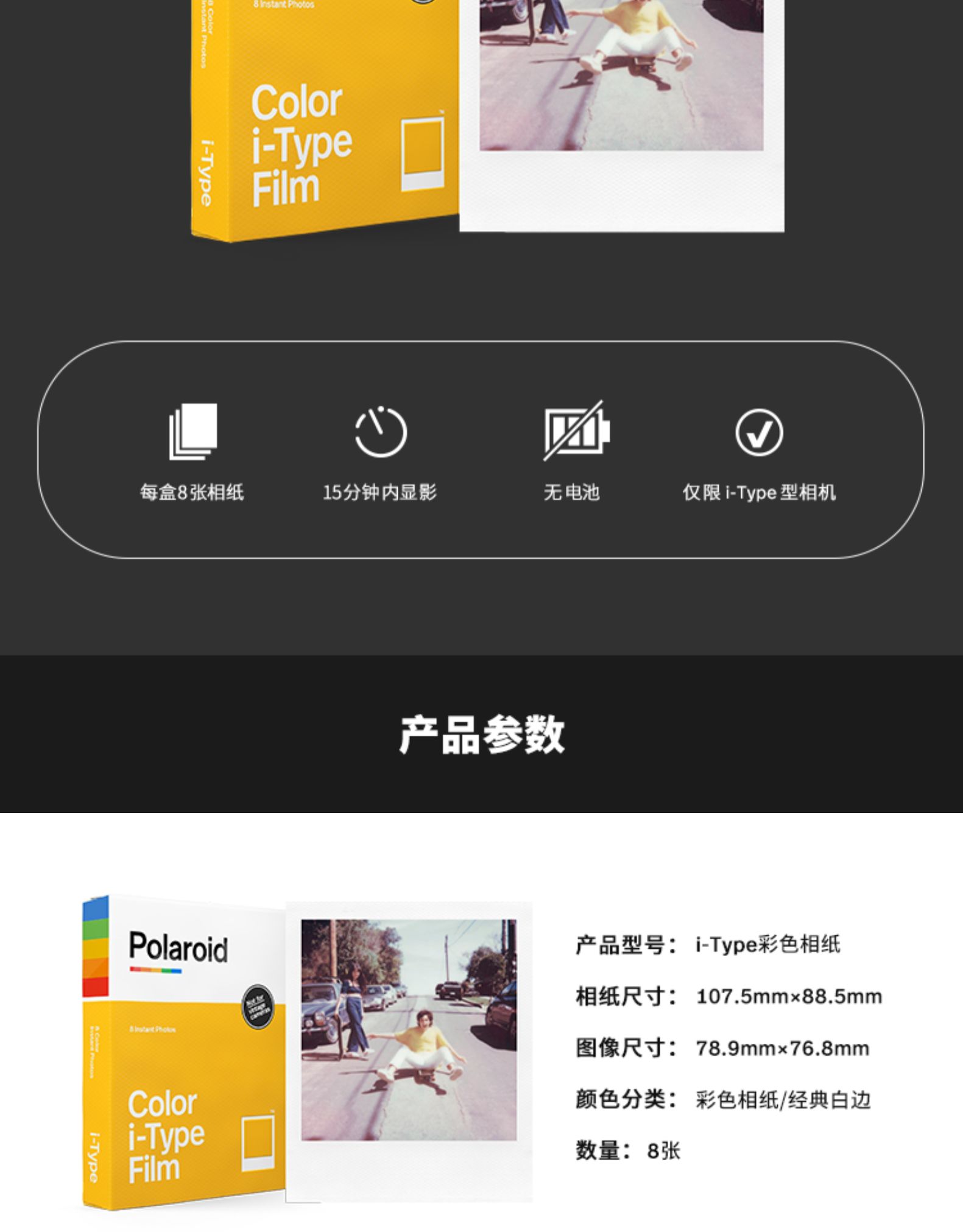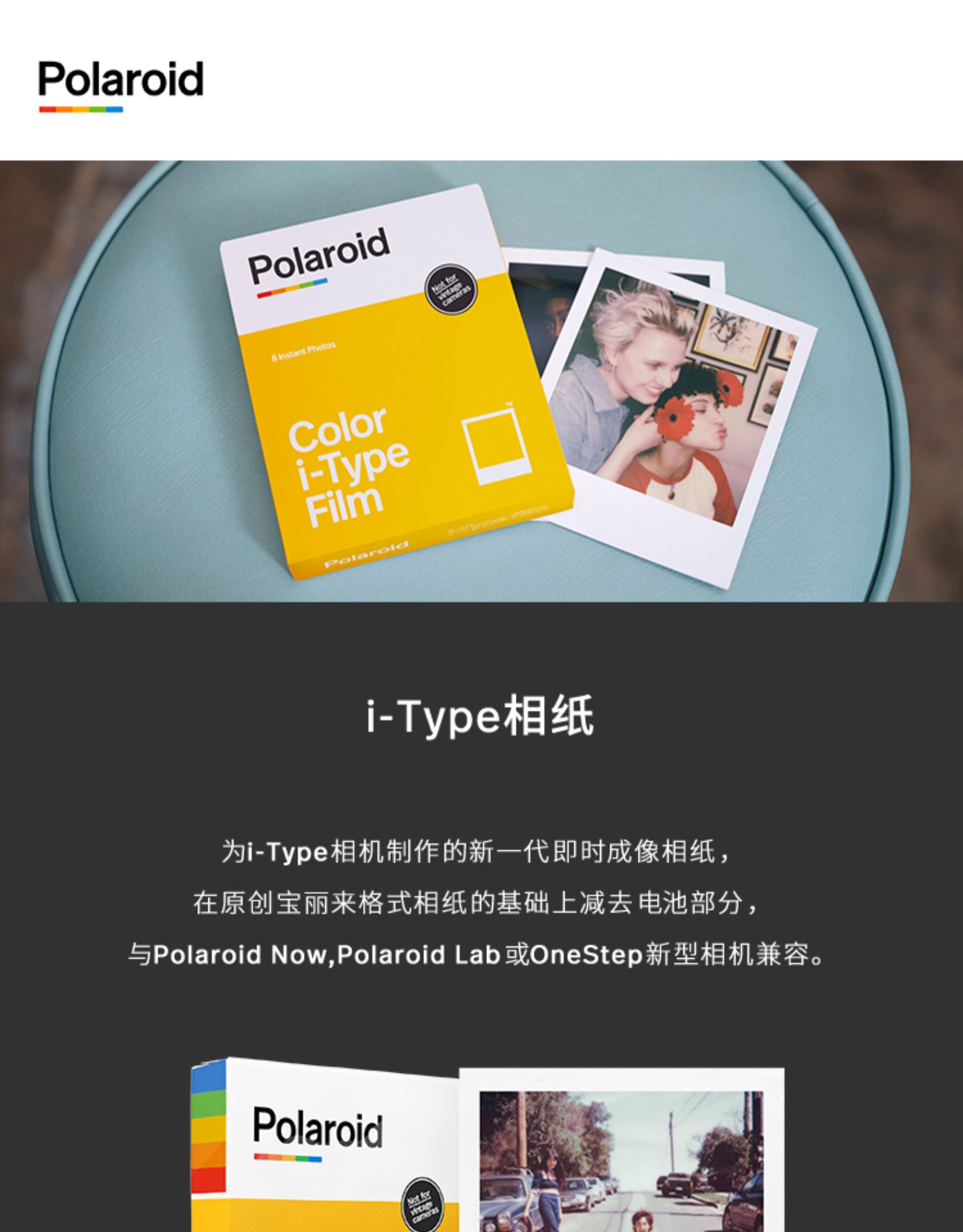 Polaroid/宝丽来 拍立得相纸 I-TYPE 8张 彩色【仅限i-Type相机可用】
