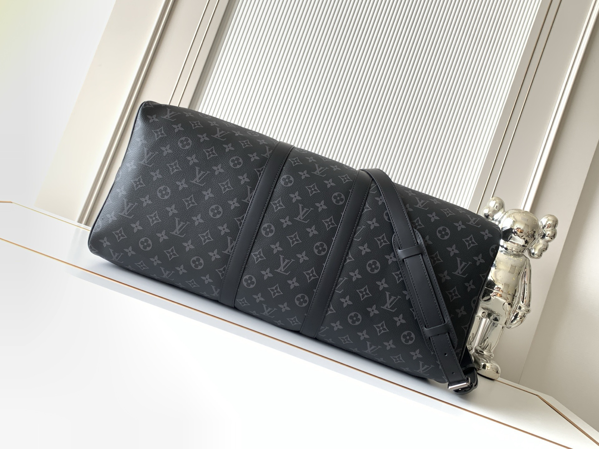 BANDOULIÈRE 45 50 55旅行袋以Monogram帆布为袋身,配以可拆卸式皮肩带和一个可拆卸式皮证件套。尺寸: