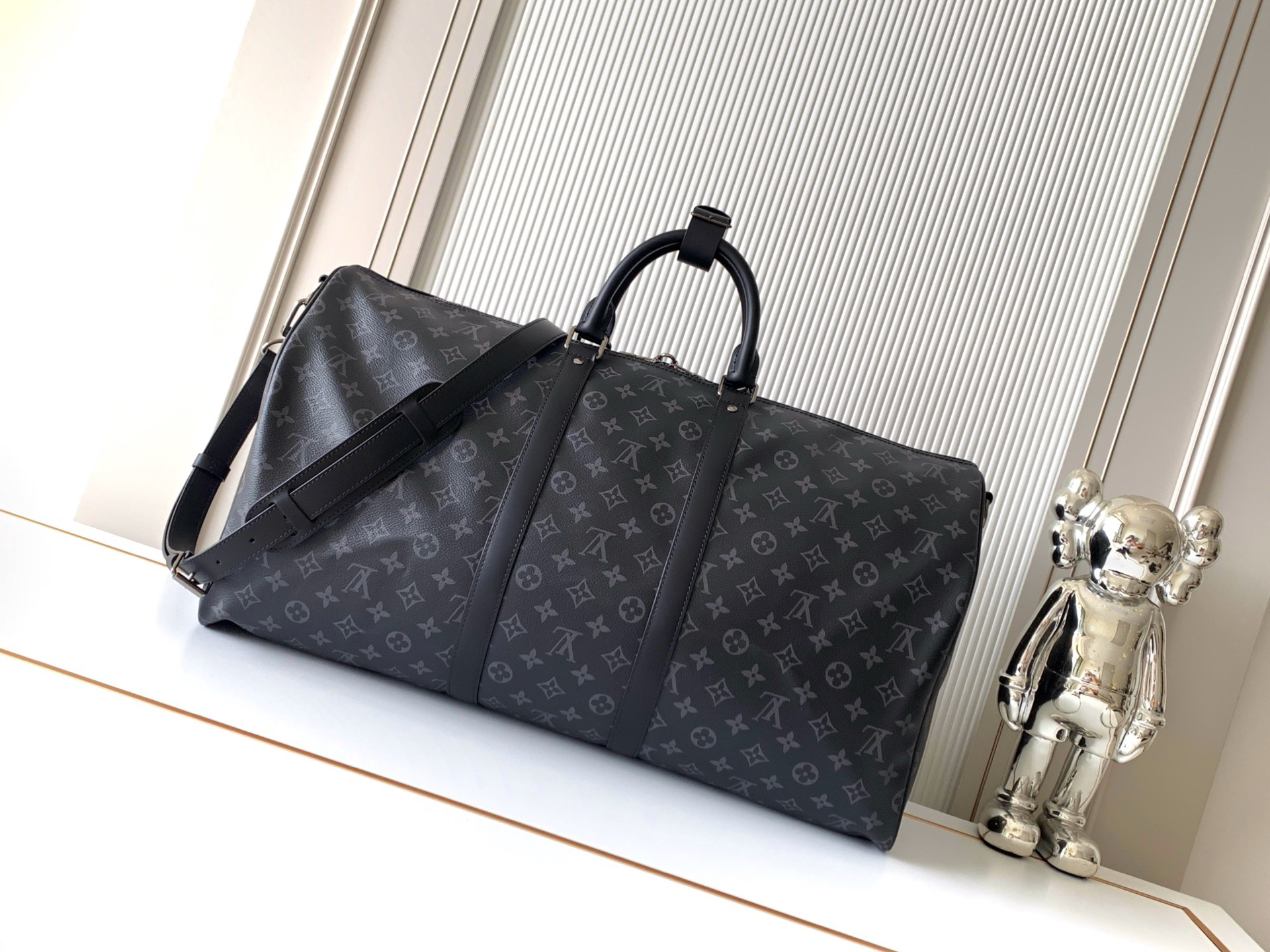 秋冬特惠💰中号45cm💰1430 大号50cm💰1530 特大号55cm💰1630 渠道级LV【精钢五金 MB163c01变码芯片】M40569 M40568 M40605黑花旅行手提包 te级LV 全套包装 Keepall是路易威登旅行袋系列中的经典。此款KEEPALL