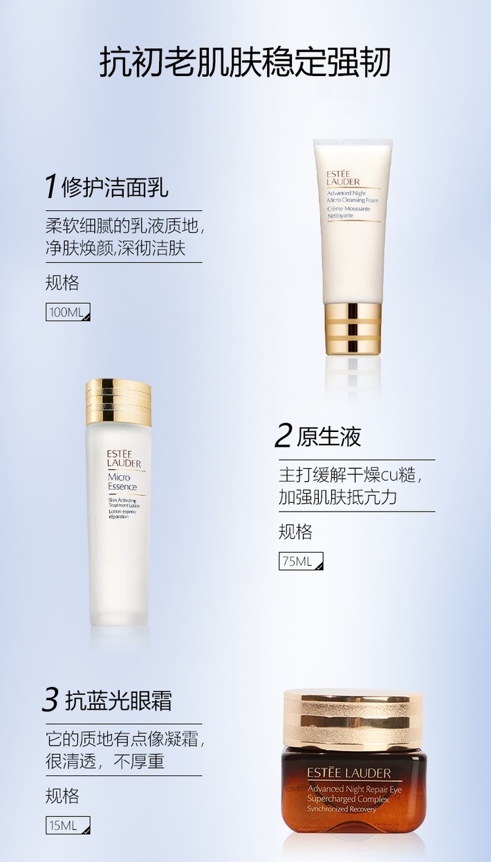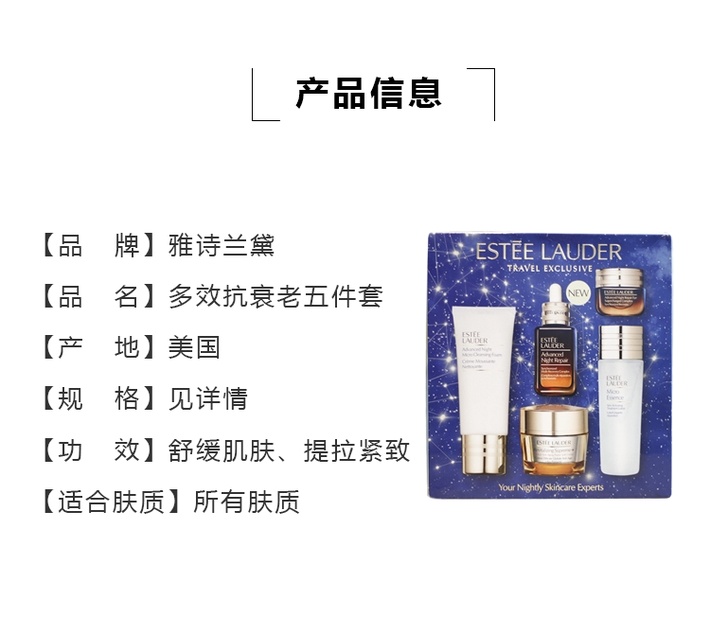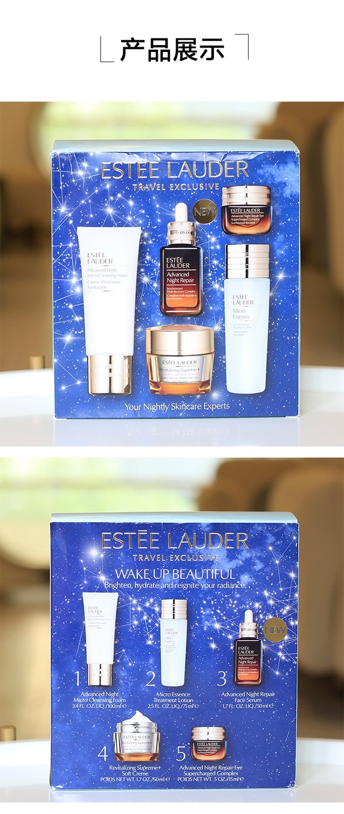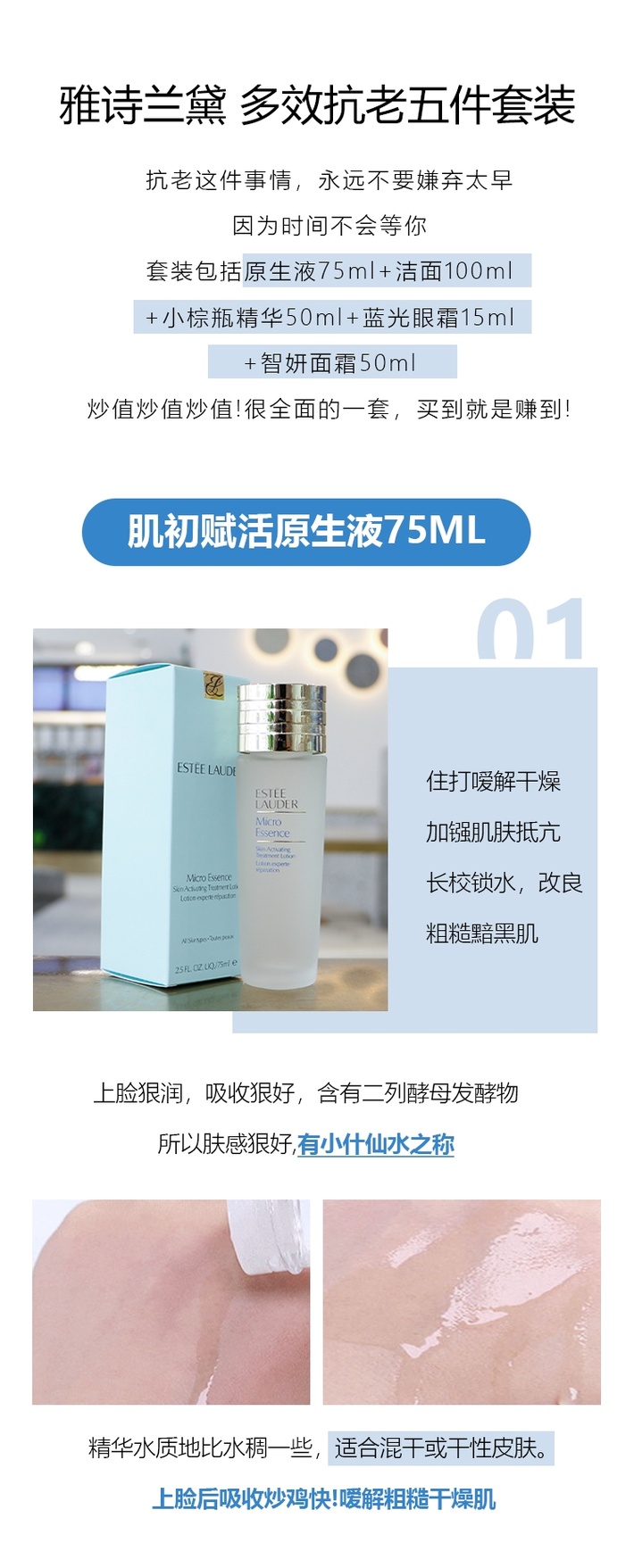 【中欧班列精选】y LPY美国ESTĒE LAUDER雅诗兰黛衰老抗五件套(原生液 75ml+多效智妍面霜 50ml+洁面 100ml+7代精华 50ml+眼霜 15ml)