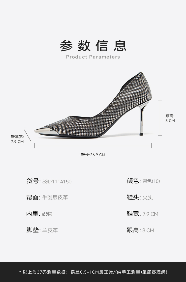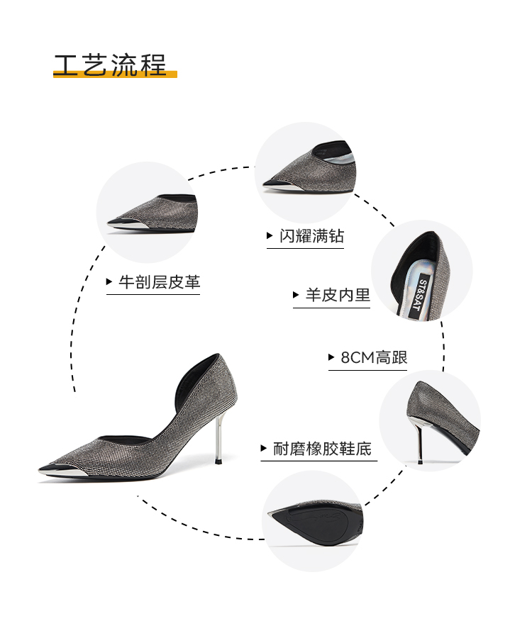 【星芒闪钻】星期六气质尖头细跟晚宴高跟鞋SSD1114150