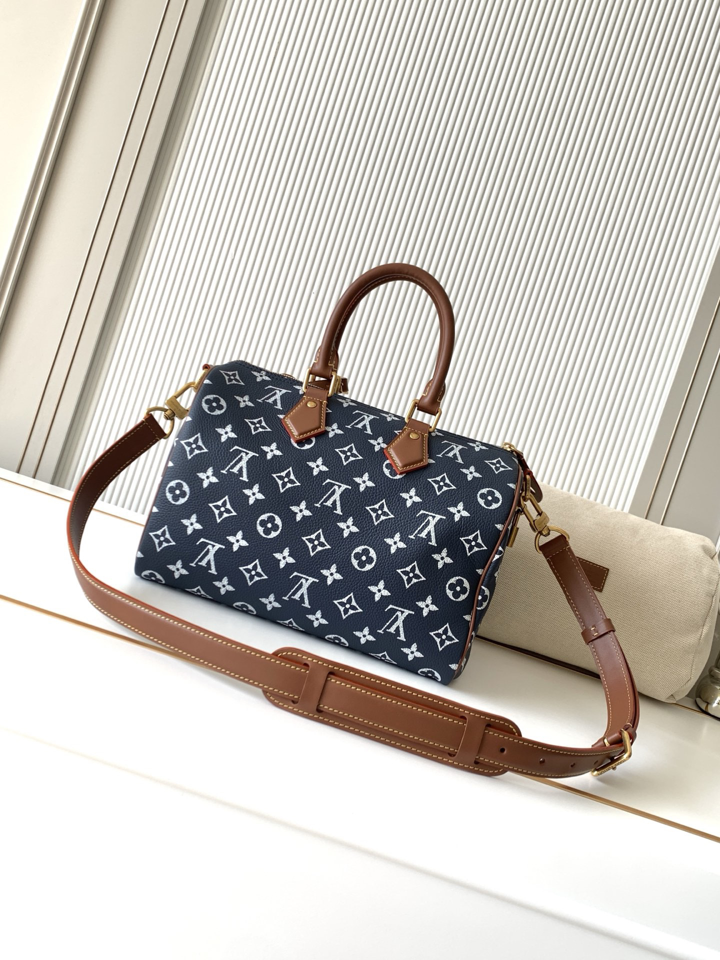 秋冬特惠💰1670 渠道级LV【全钢五金 MB163c01变码芯片】te级LV 全套包装 M15282蓝色布内里 本款Speedy P9 Bandoulière30手袋