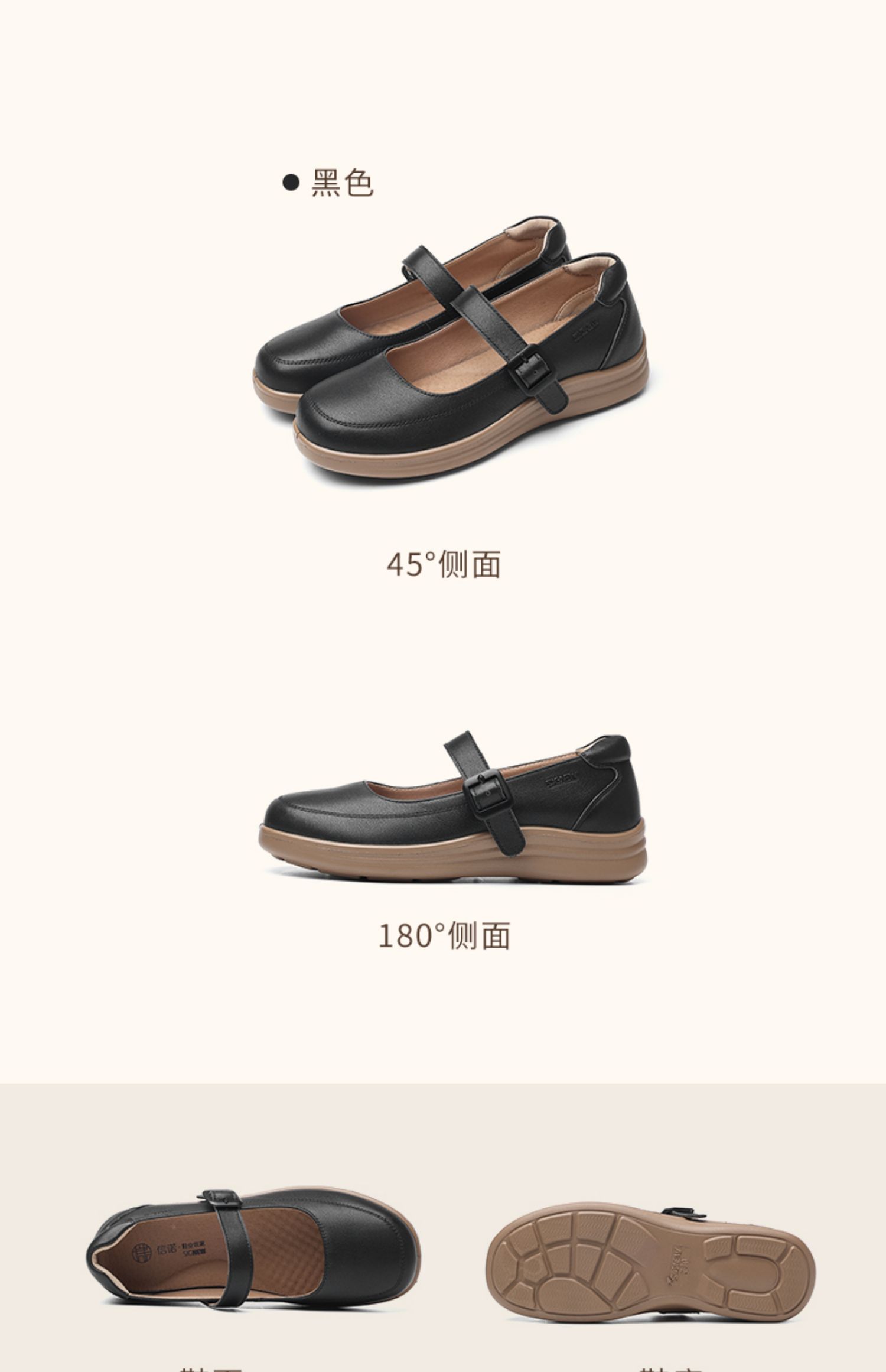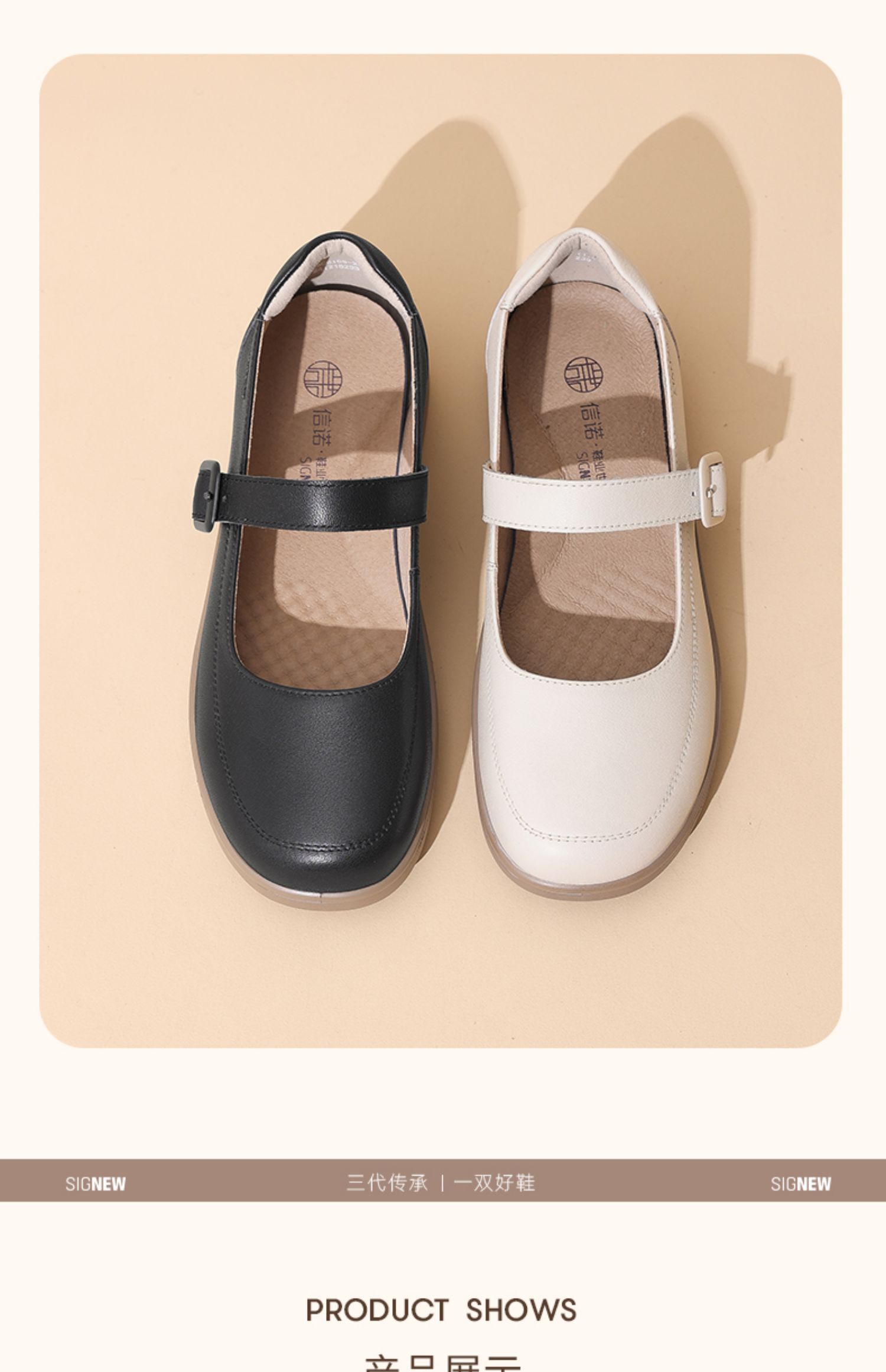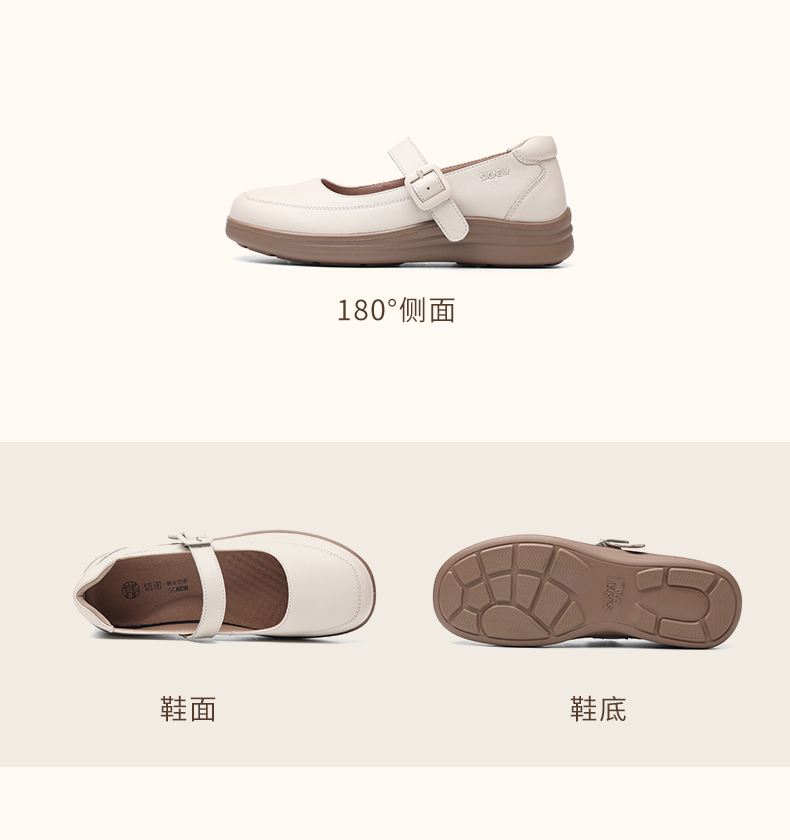 信诺真皮平底单鞋玛丽珍鞋2025春季新款女鞋中老年软底妈妈鞋皮鞋5C8166-2
