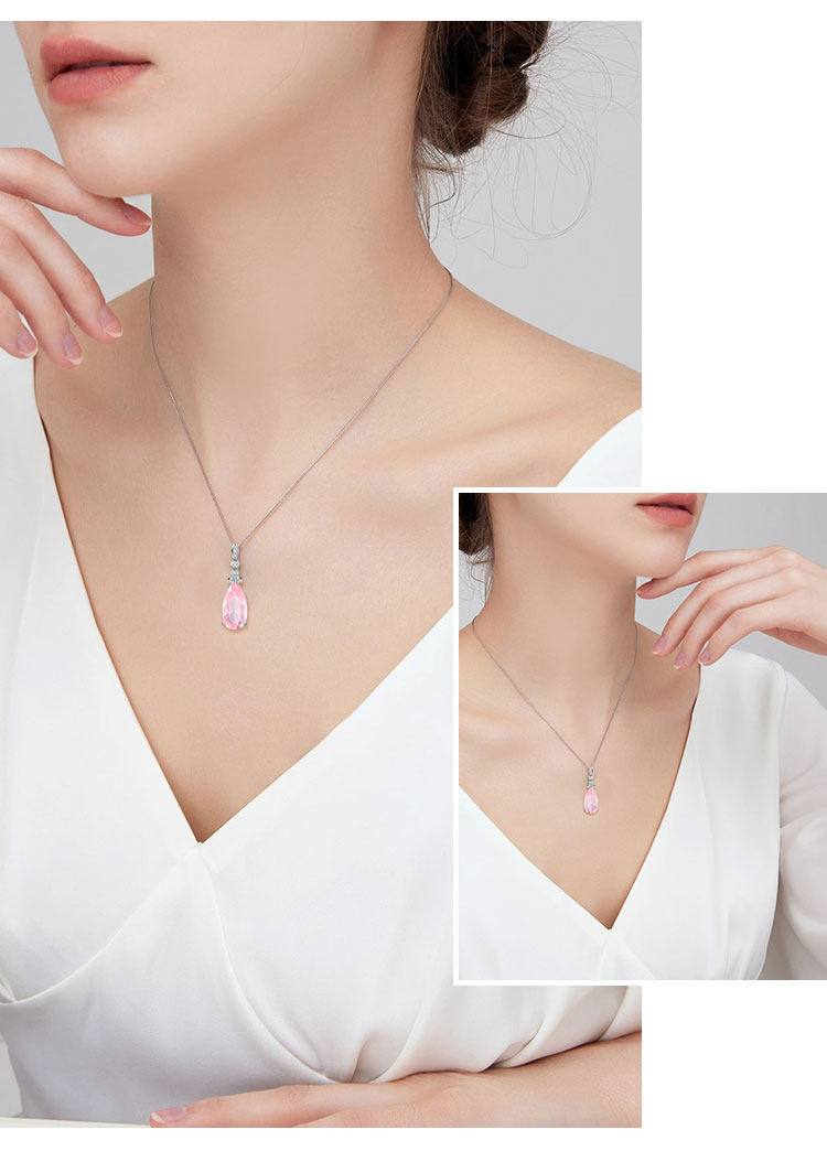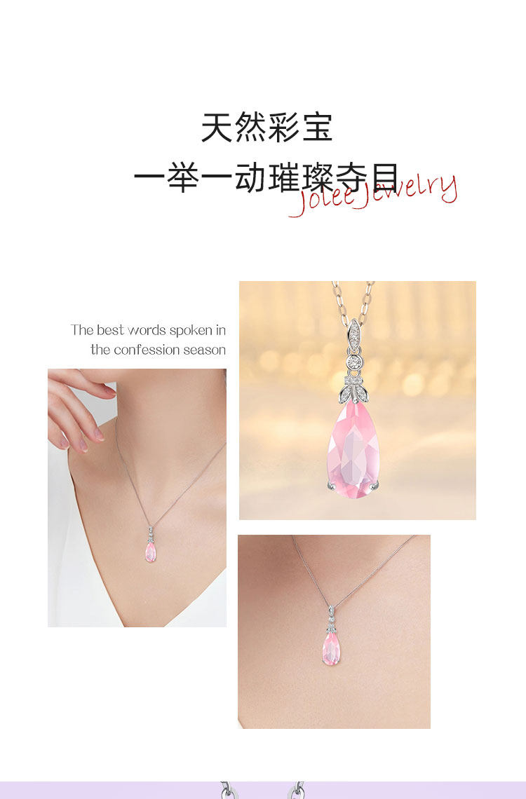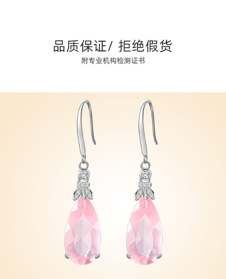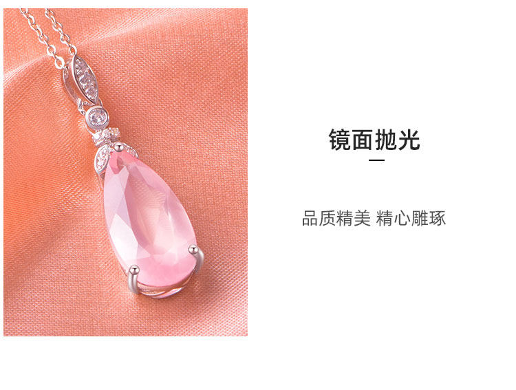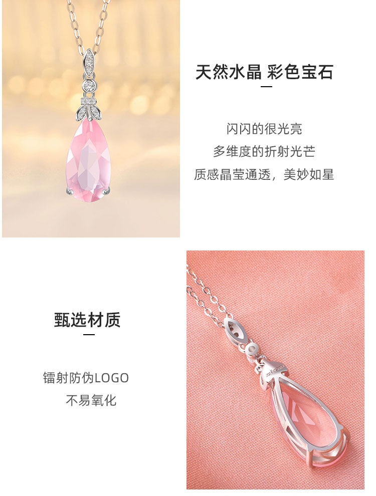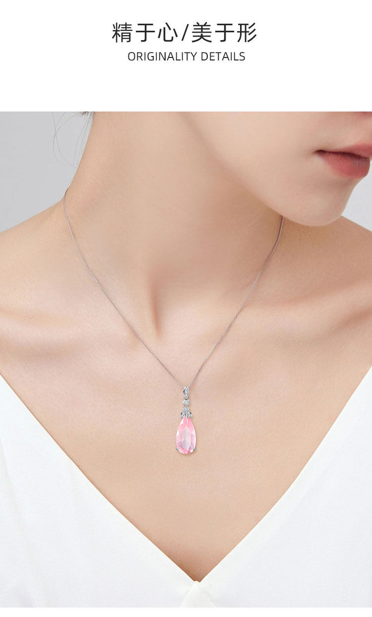 【粉水晶耳钉/项链】S925银时尚芙蓉石简约吊坠饰品送女生节日礼物JE25032/JP25017-水晶CC