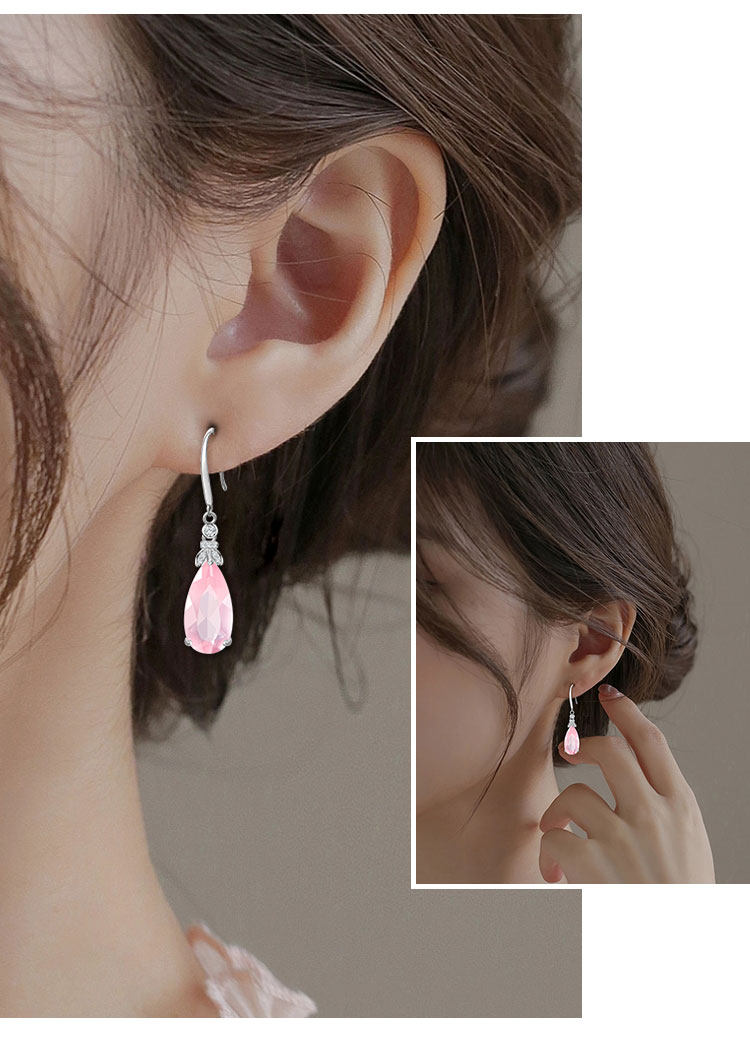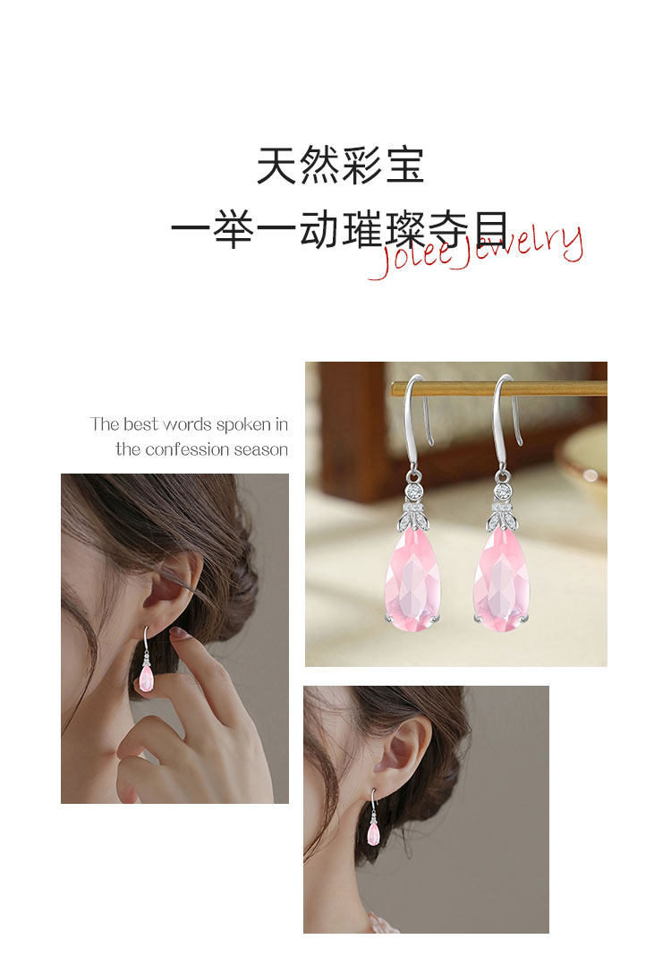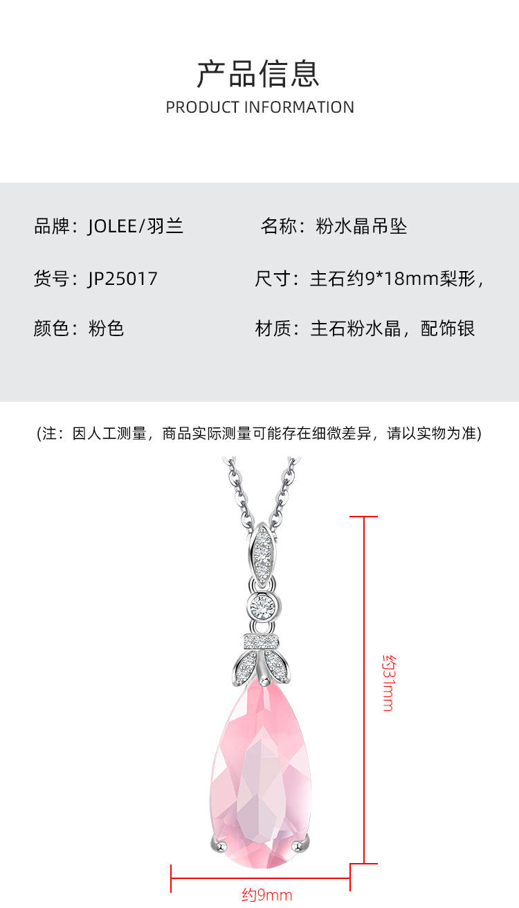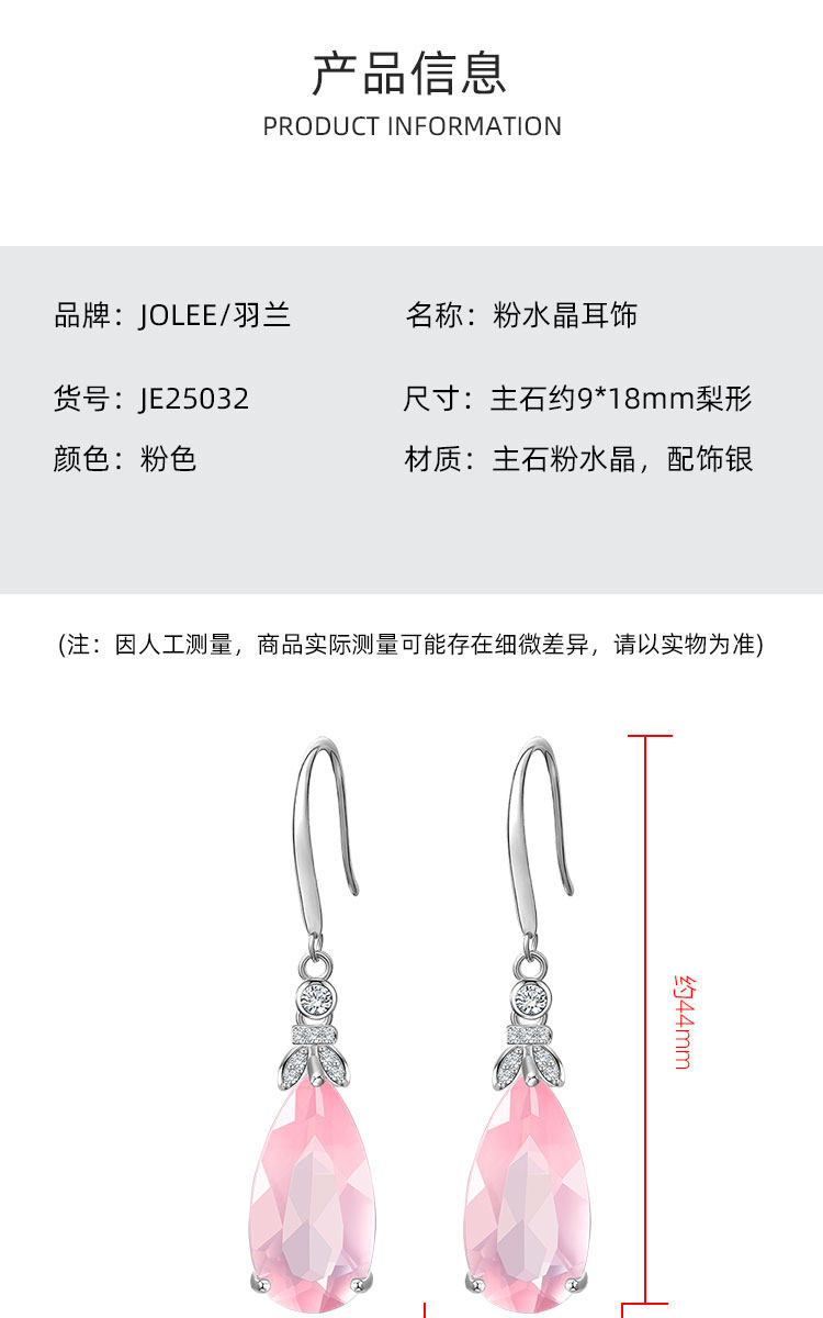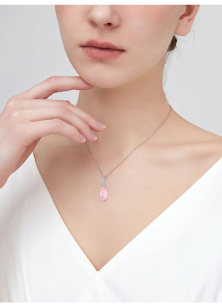 【粉水晶耳钉/项链】S925银时尚芙蓉石简约吊坠饰品送女生节日礼物JE25032/JP25017-水晶CC