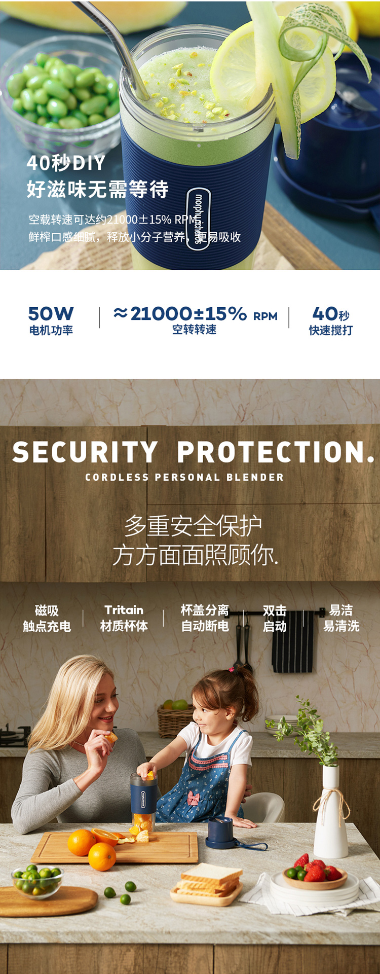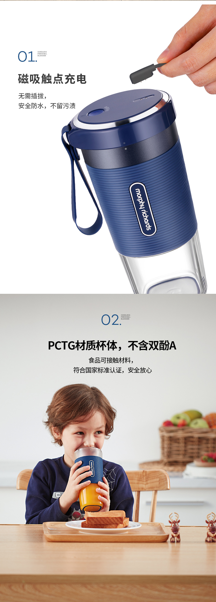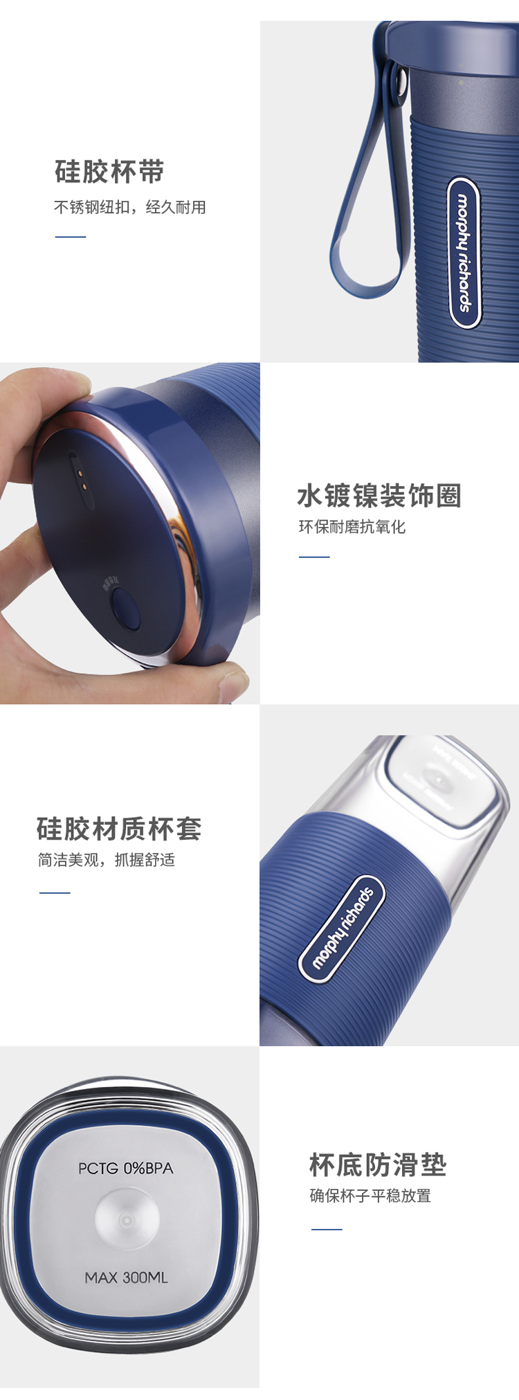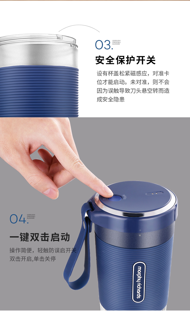 摩飞(Morphyrichards)榨汁机便携式磁吸充电迷你无线果汁机料理机随行杯MR9600蓝色