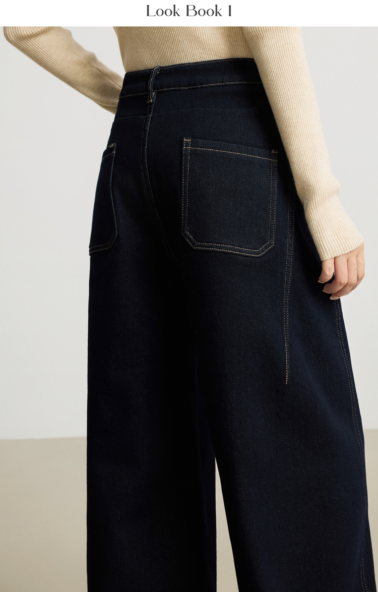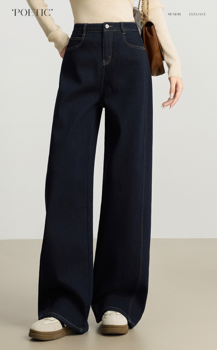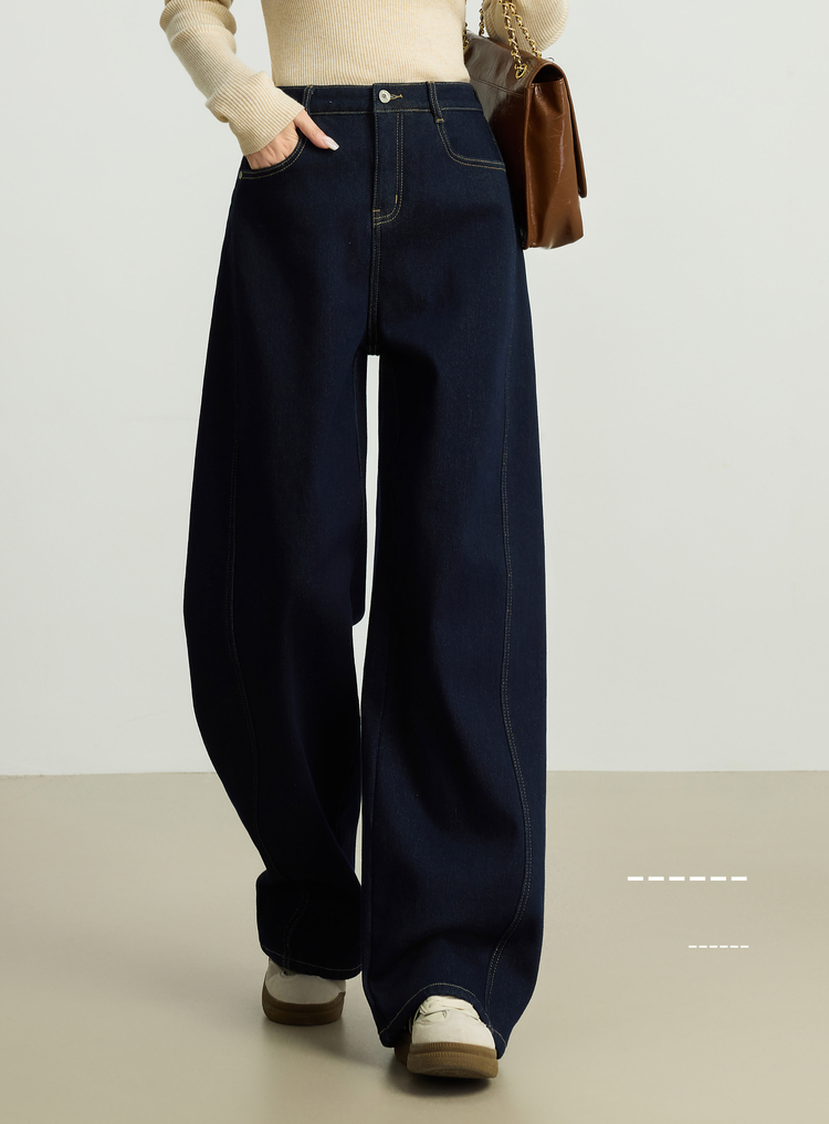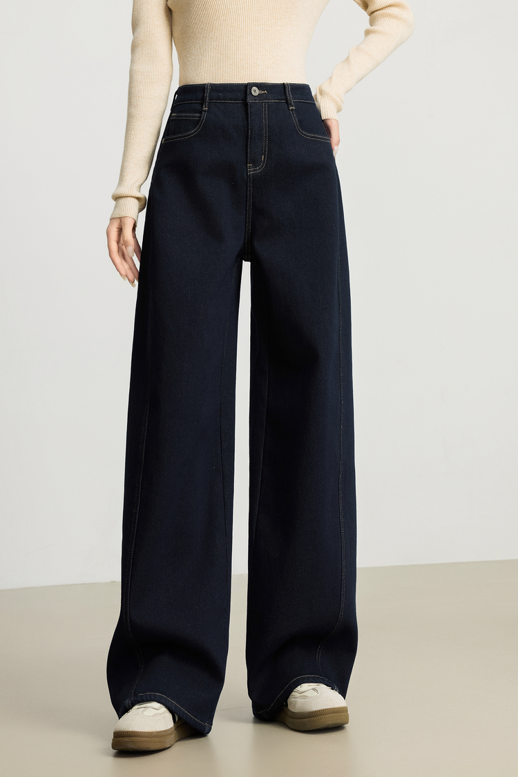 【周末秒杀】熙世界「进阶厚绒法棍裤」加绒直筒牛仔裤女冬季复古保暖阔腿长裤