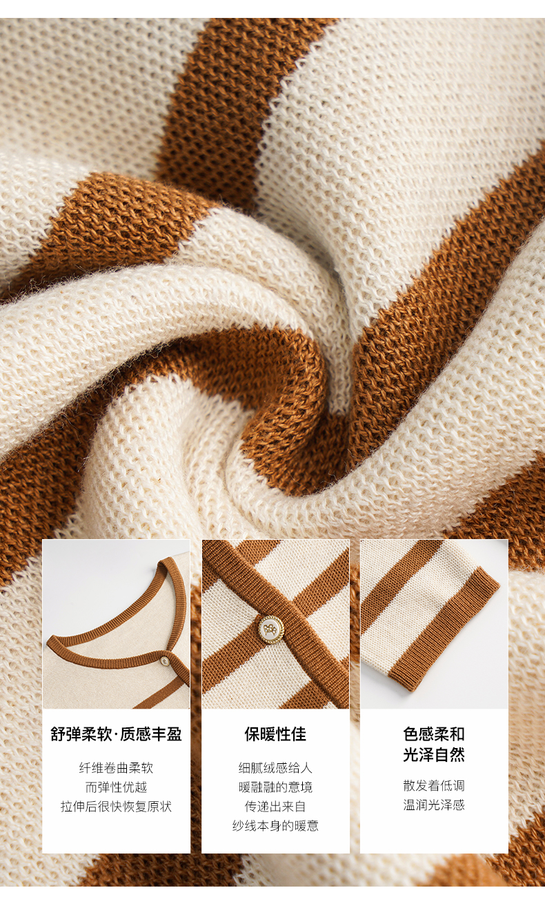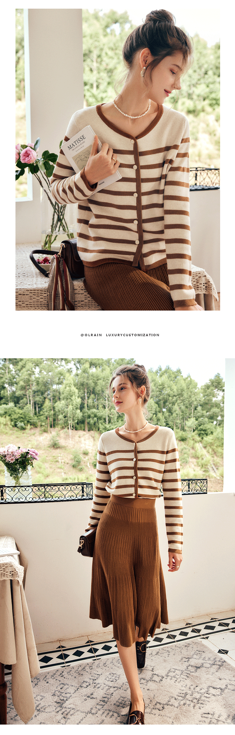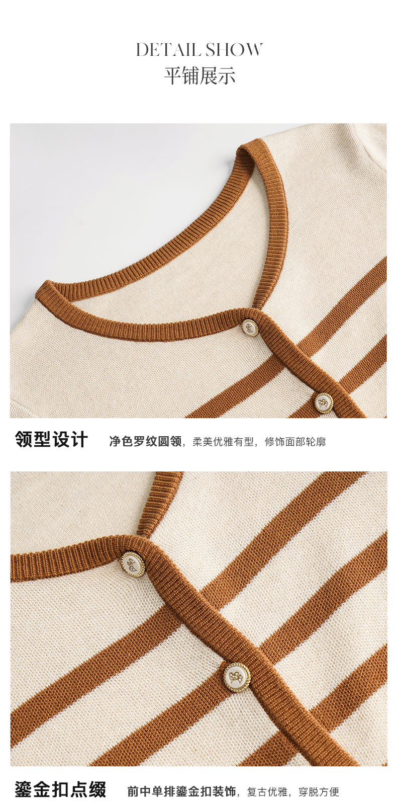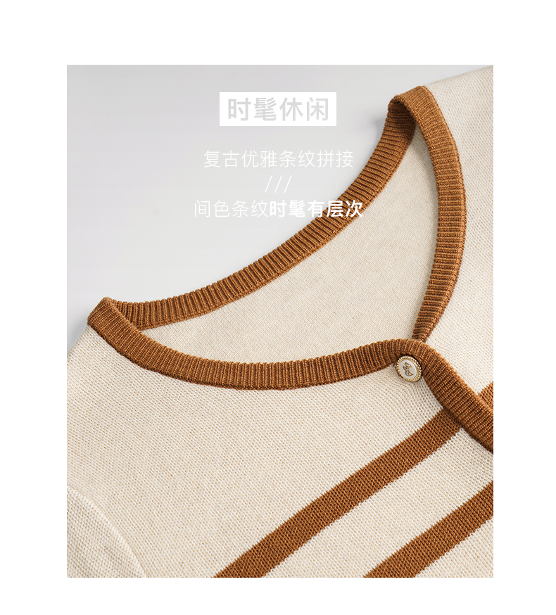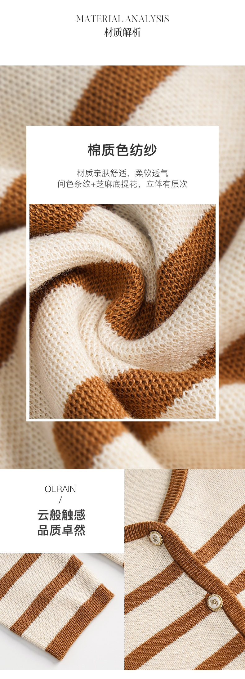 OLrain欧芮儿法式条纹毛衣外套女秋季2022新款慵懒风撞色针织开衫