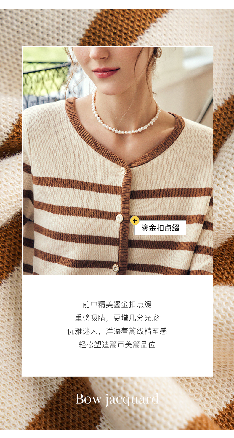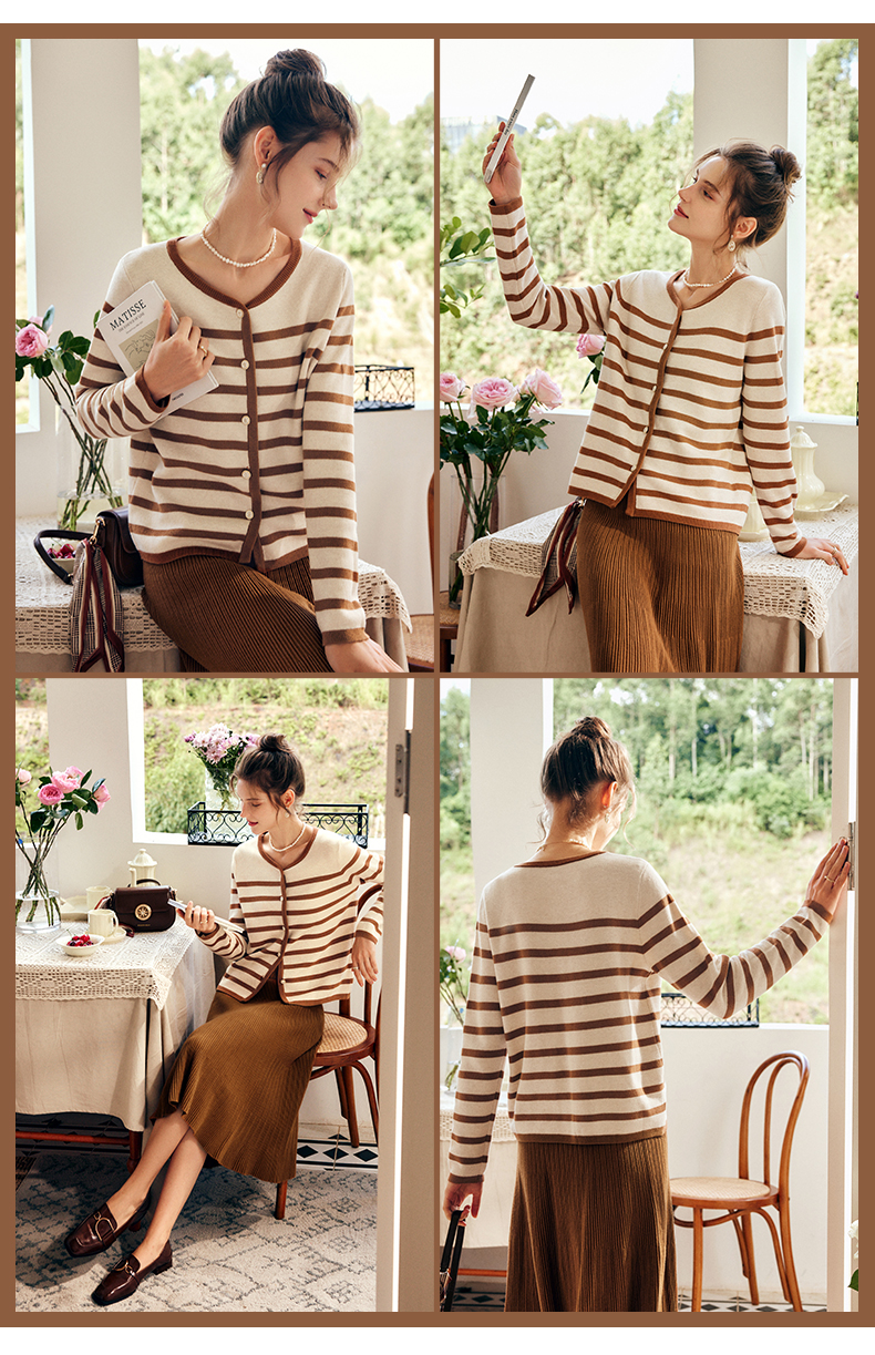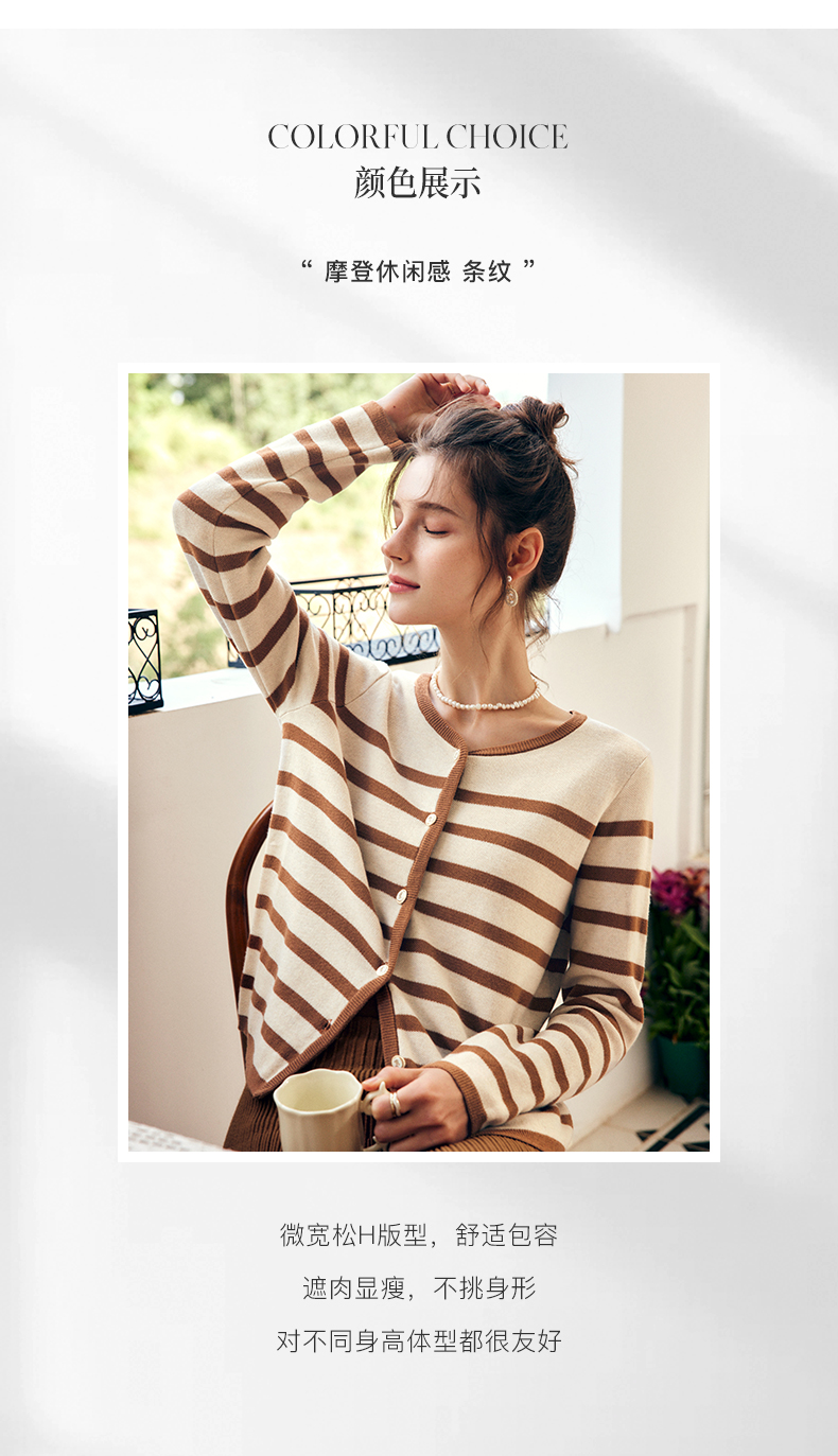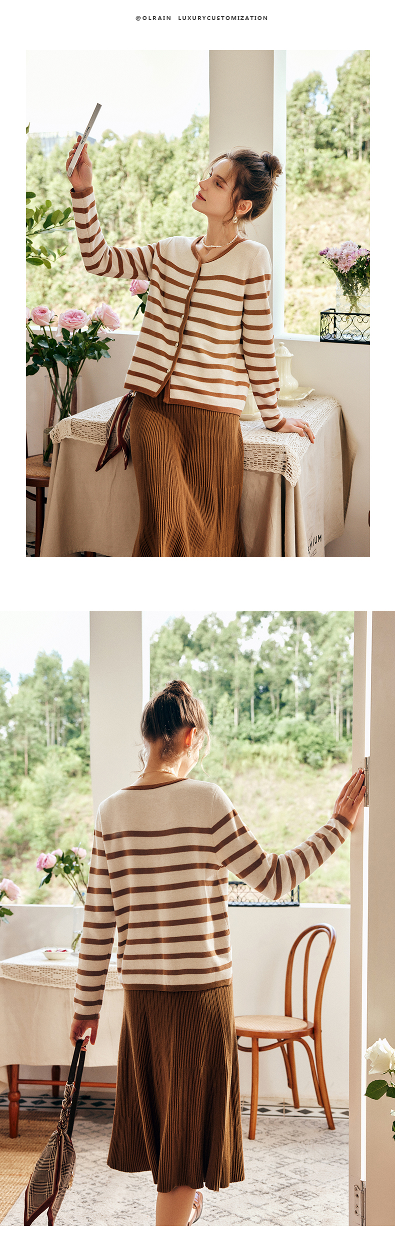 OLrain欧芮儿法式条纹毛衣外套女秋季2022新款慵懒风撞色针织开衫