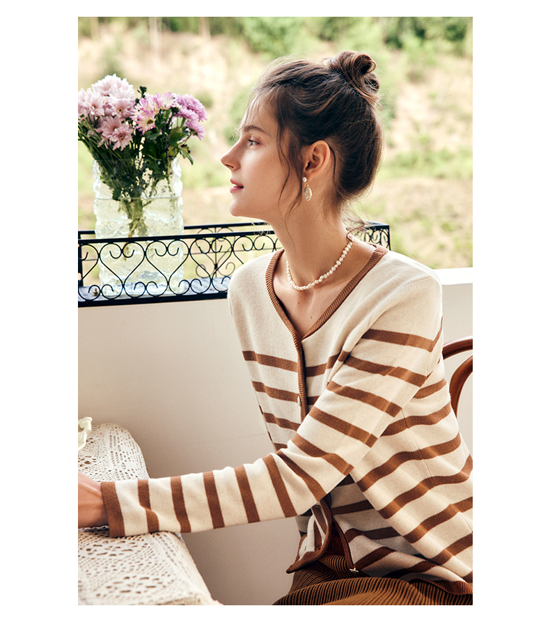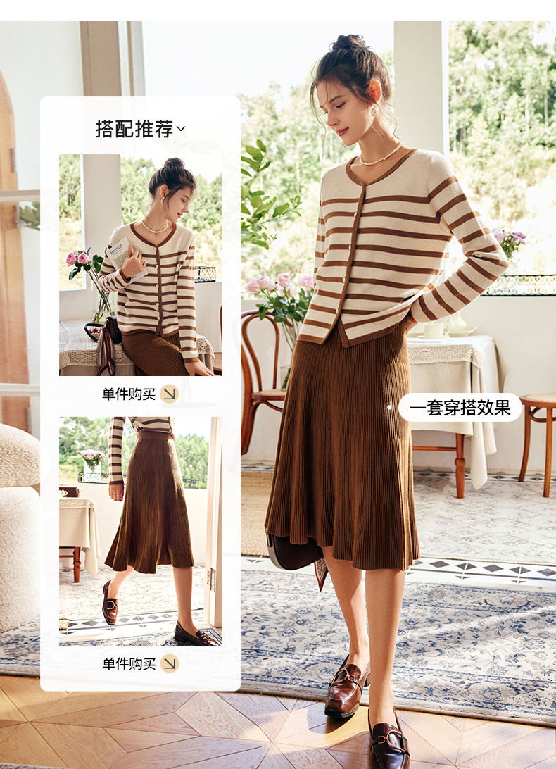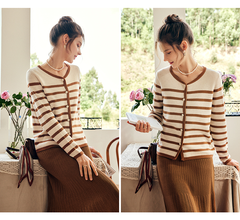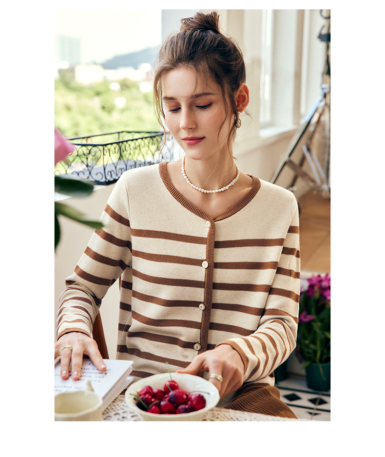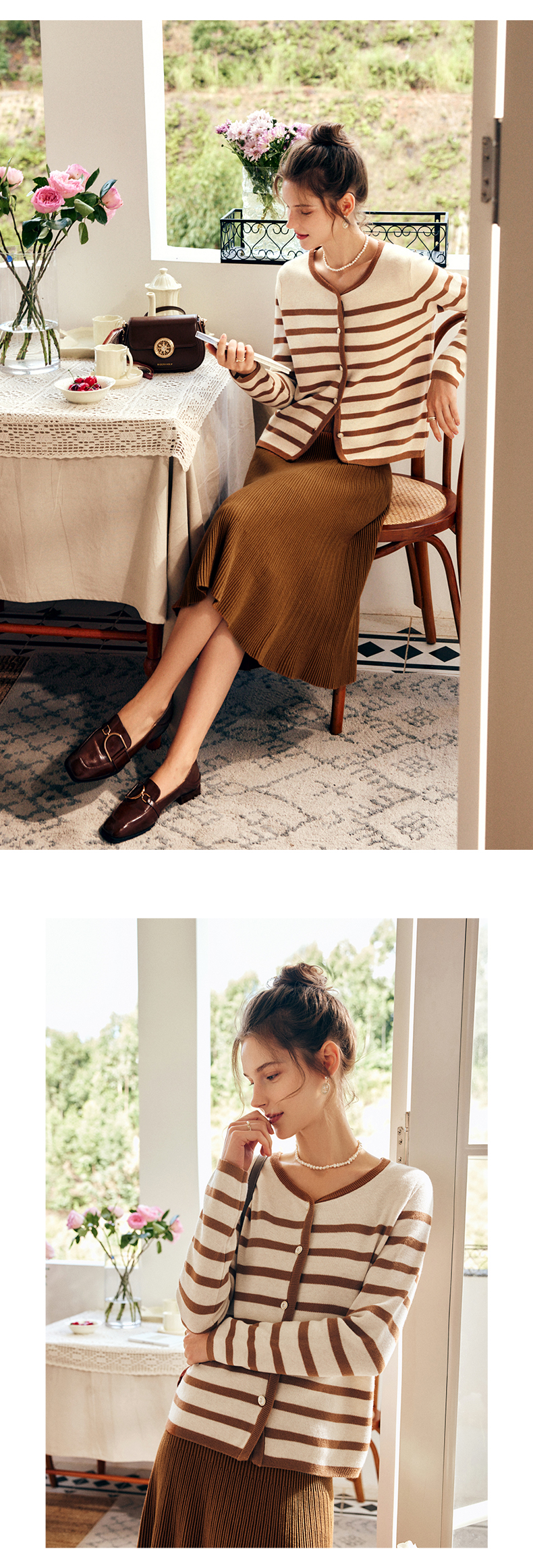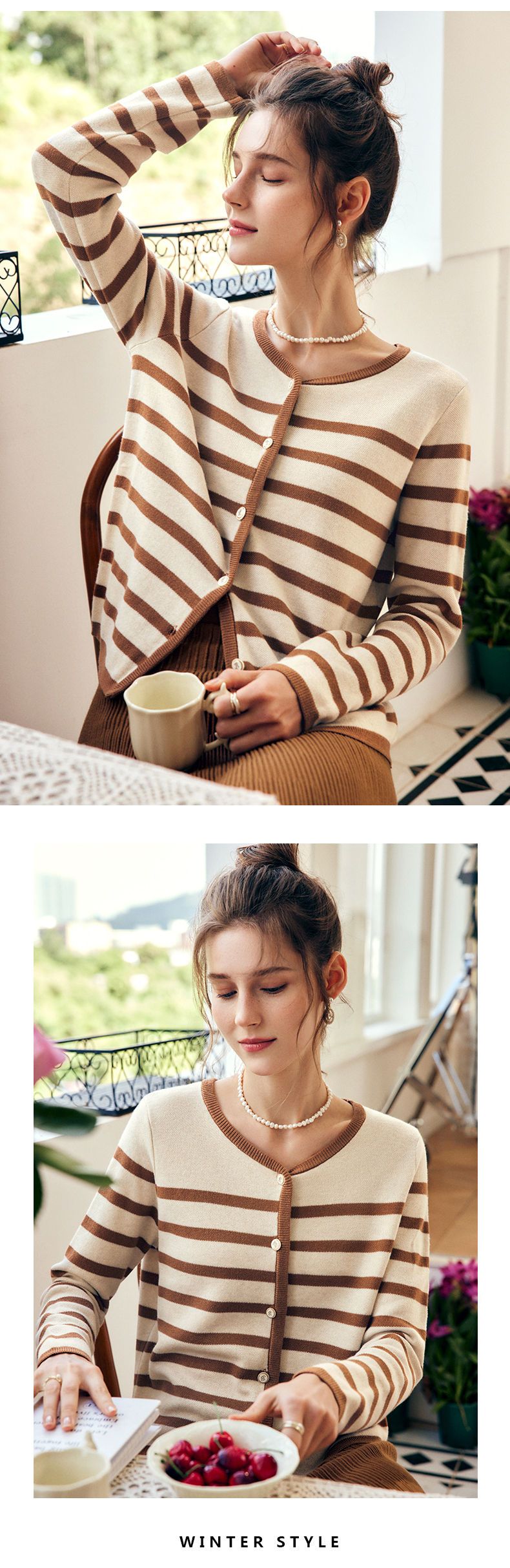 OLrain欧芮儿法式条纹毛衣外套女秋季2022新款慵懒风撞色针织开衫