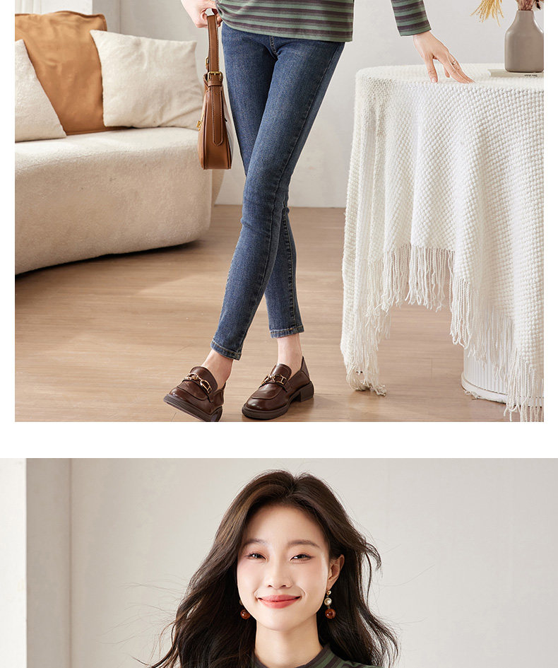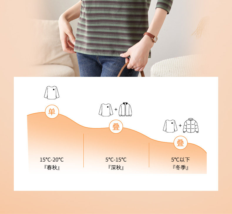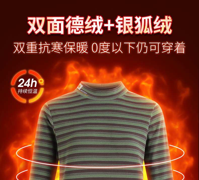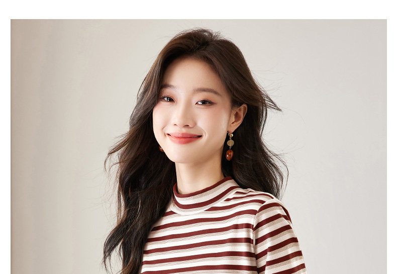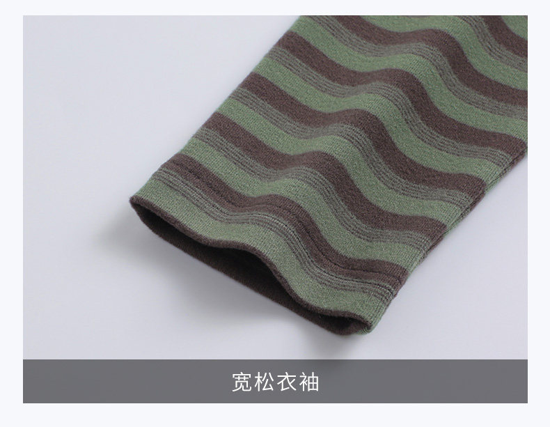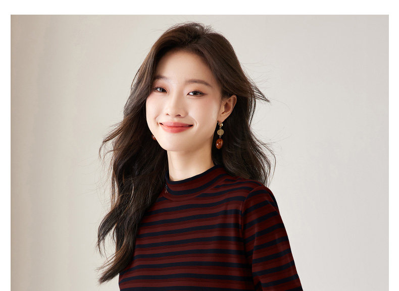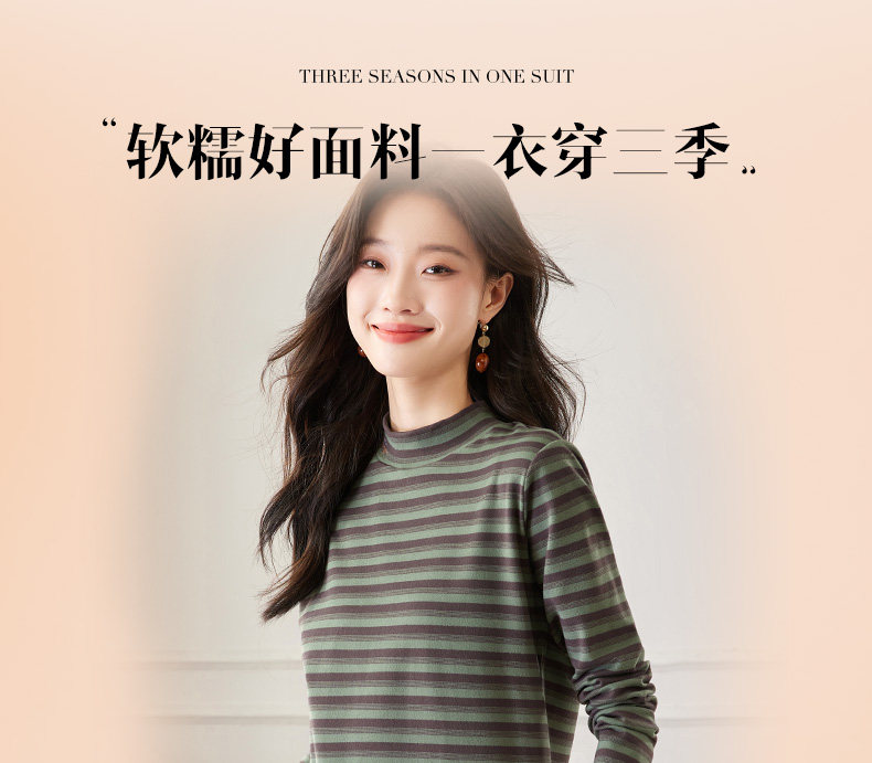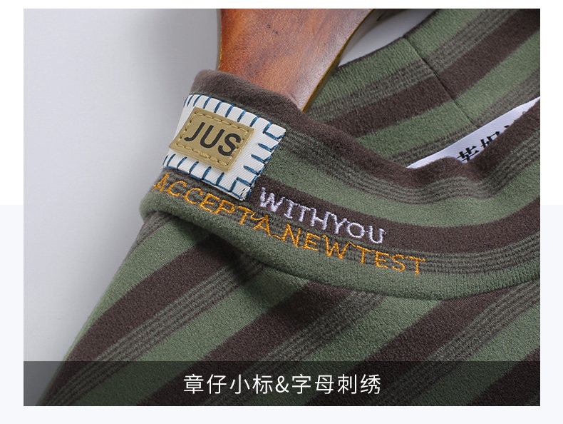 女士德绒半高领打底衫女秋冬新款加绒大码女装条纹长袖t恤女上衣