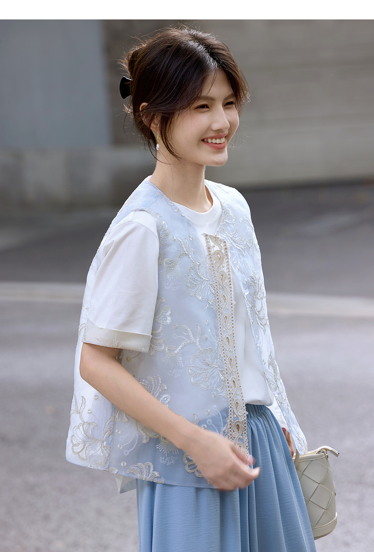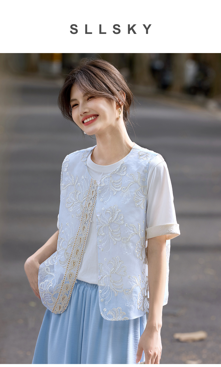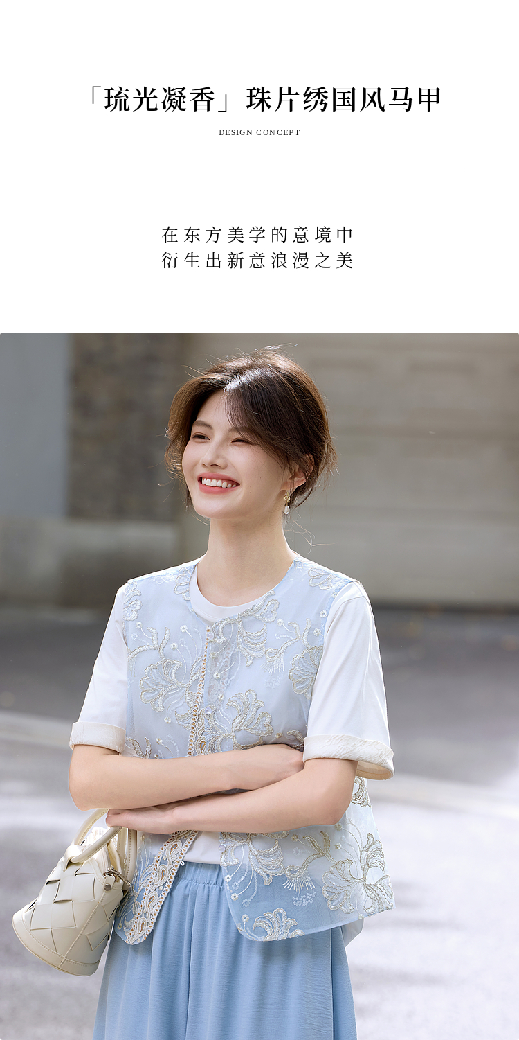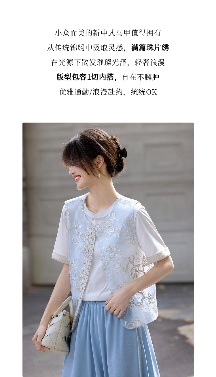 【08/06新品】熙世界新中式珠片绣花马甲女2025年夏秋新款气质坎肩国风无袖上衣