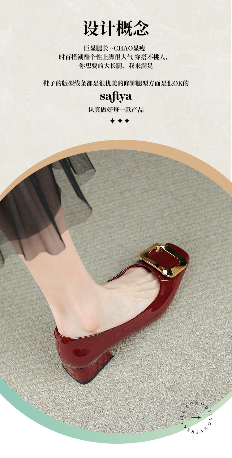 品质好货|Safiya/索菲娅2025气质方扣高级感通勤低跟浅口单鞋SFD1111783