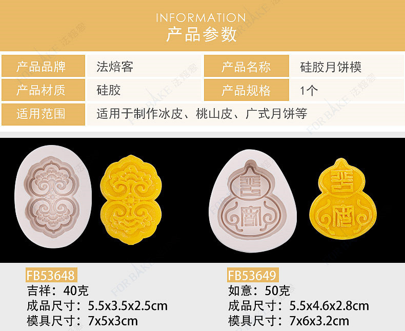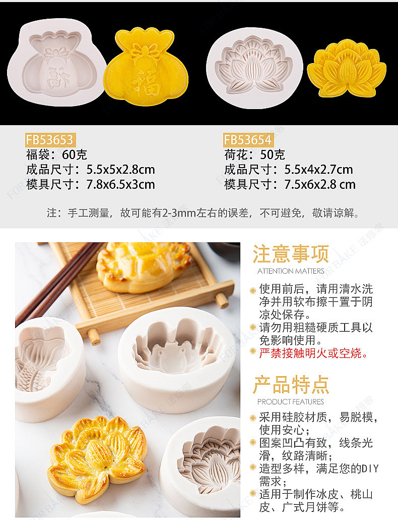 法焙客硅胶月饼模具 荷花福袋吉祥如意硅胶月饼模具 4款可选