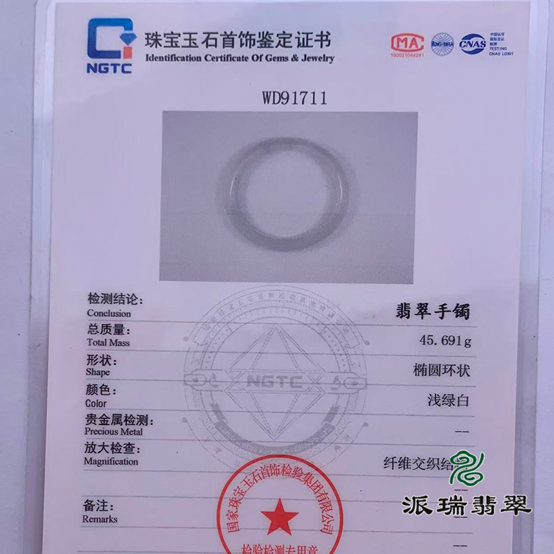 派瑞翡翠 翡翠手镯 糯种 白色