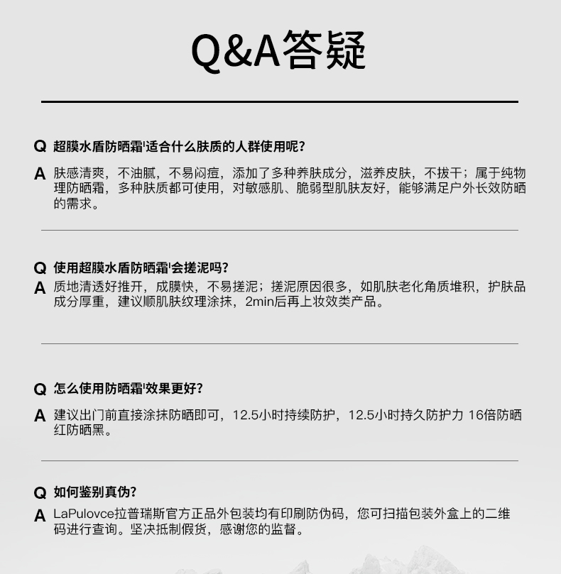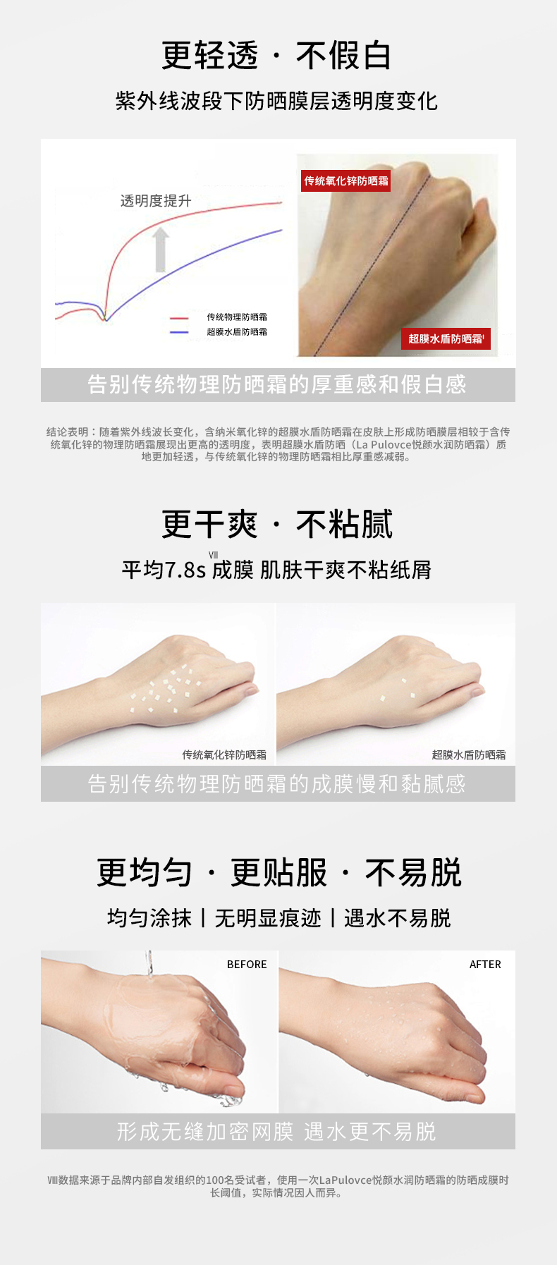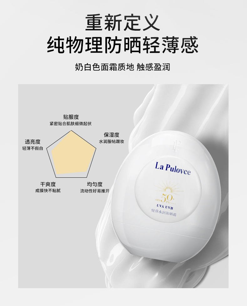 la pulovce拉普瑞斯新品水润清爽防晒纯物理温和超膜养肤防晒霜
