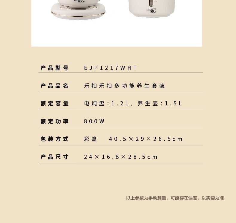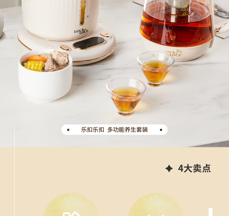 【分仓直发包邮】乐扣多功能养生壶套装白色800W EJP1217WHT