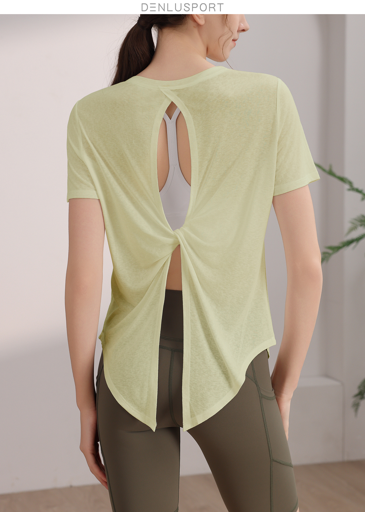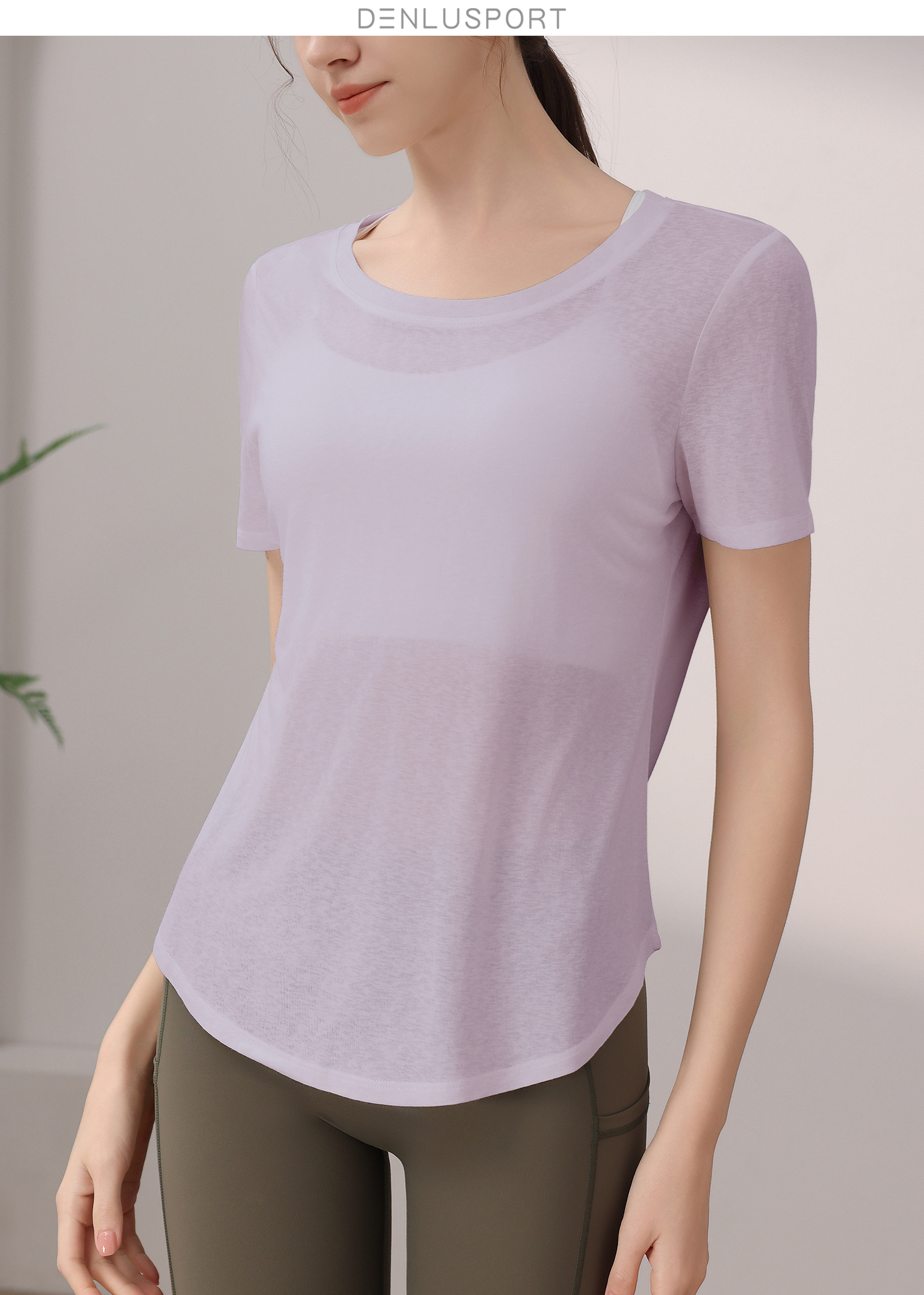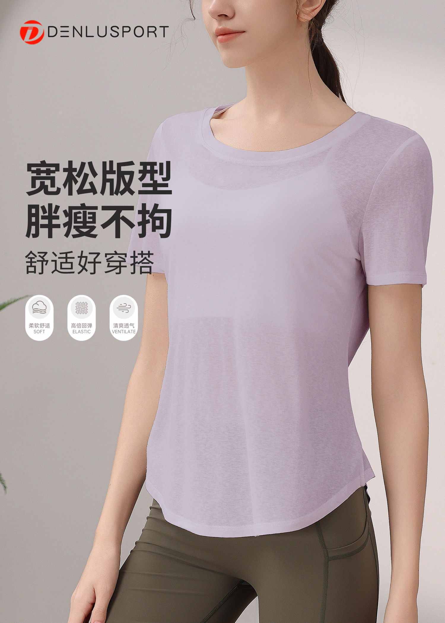 DENLUS瑜伽服上衣女夏薄款速干普拉提训练健身短袖运动罩衫 DY66179