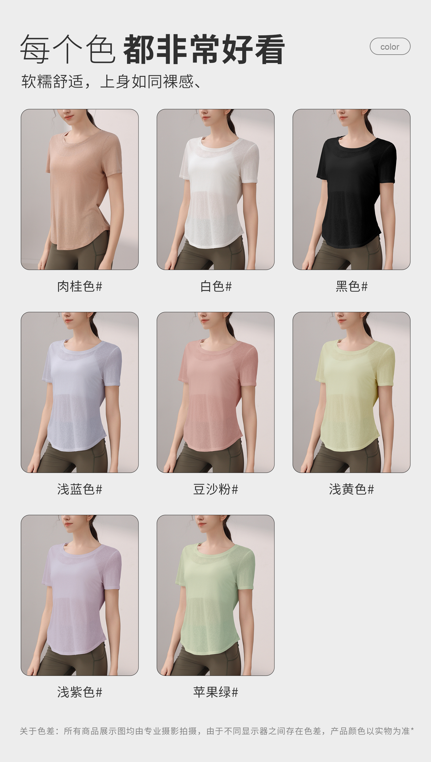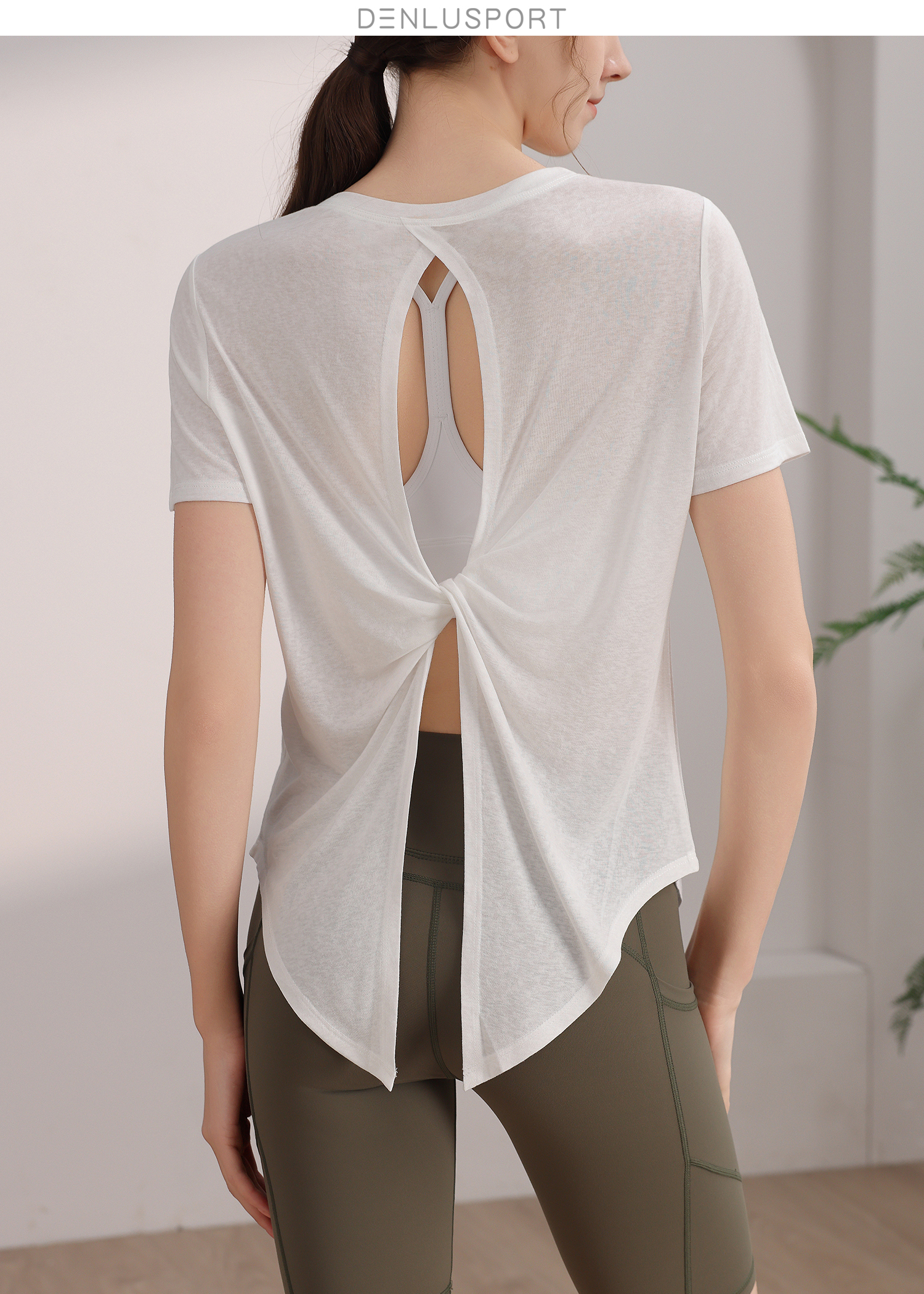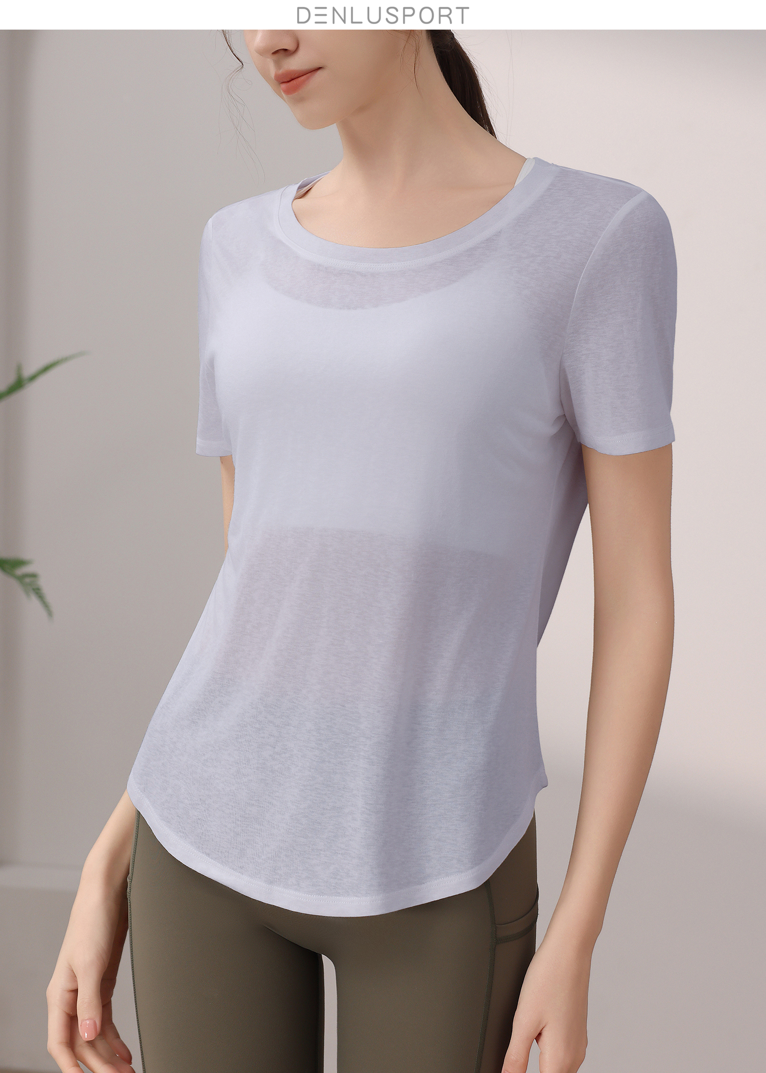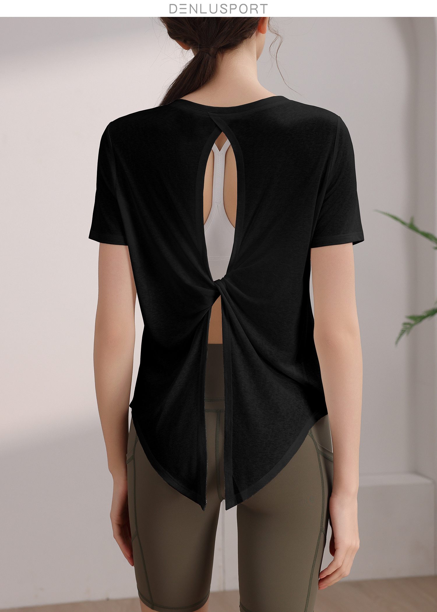 DENLUS瑜伽服上衣女夏薄款速干普拉提训练健身短袖运动罩衫 DY66179