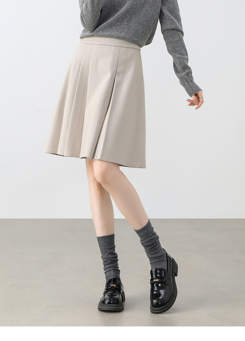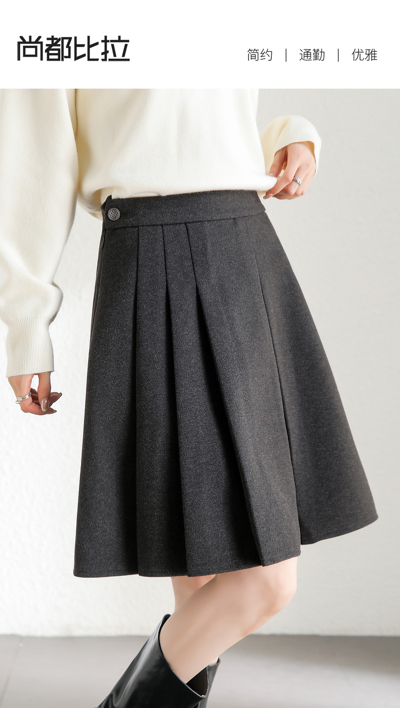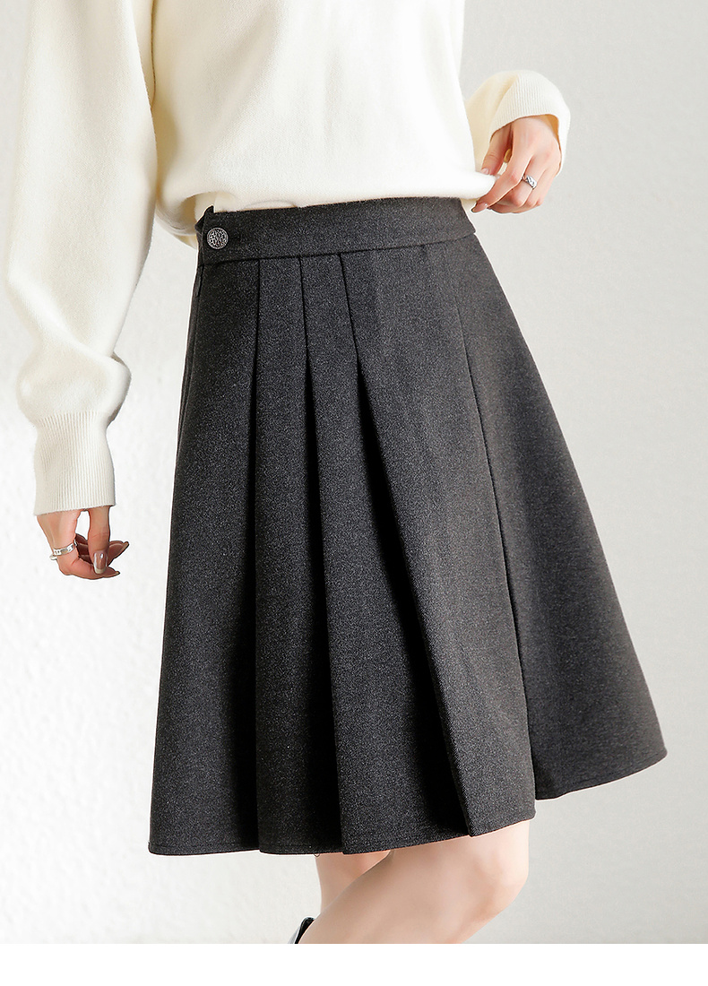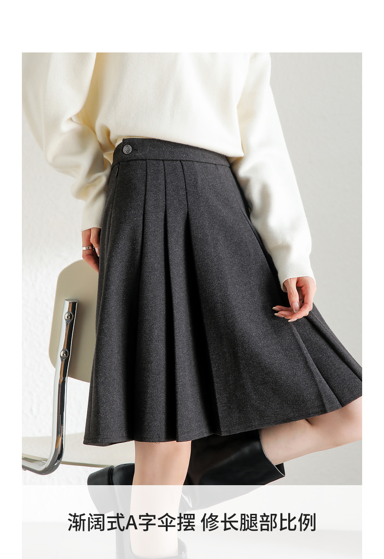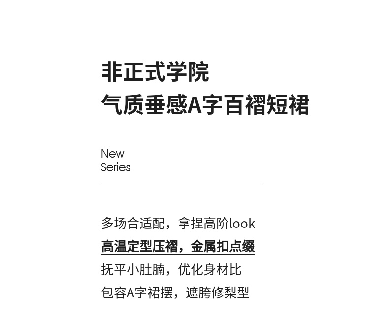 【内购】时尚金属扣点缀垂感压褶显瘦半身裙A字百褶裙-144Q57476