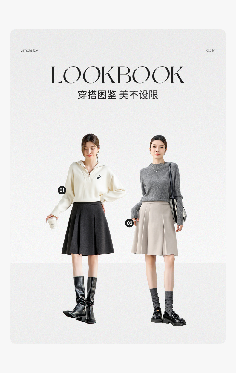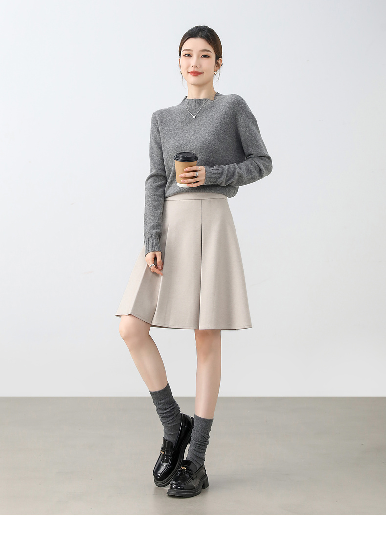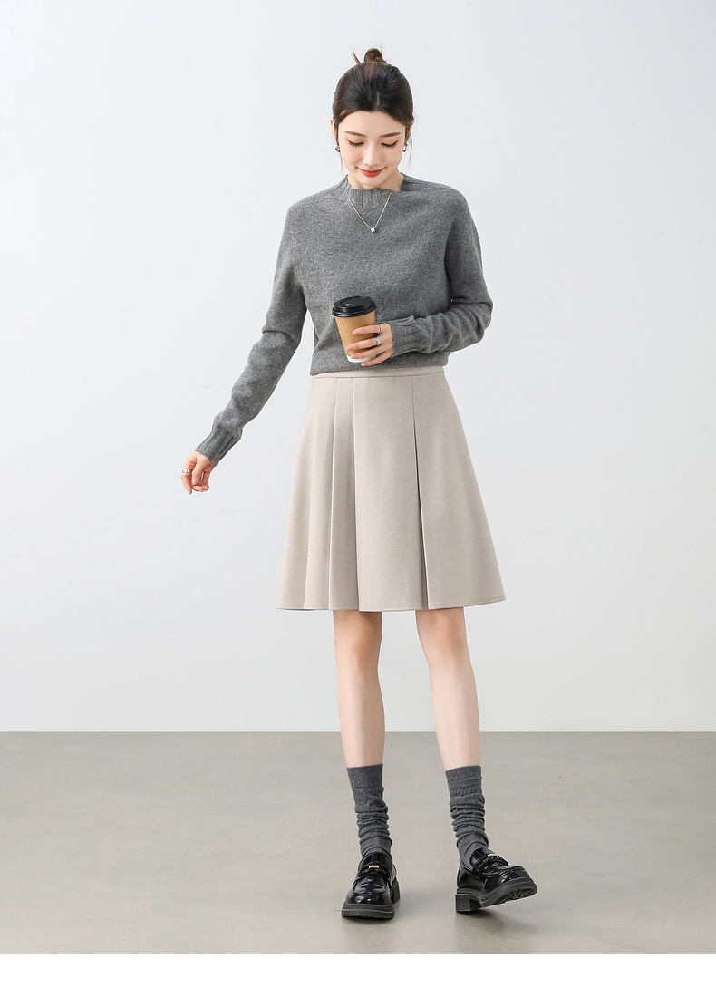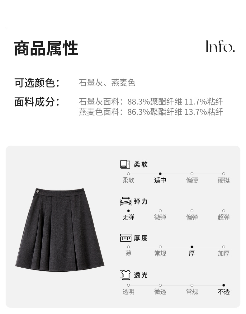 【内购】时尚金属扣点缀垂感压褶显瘦半身裙A字百褶裙-144Q57476