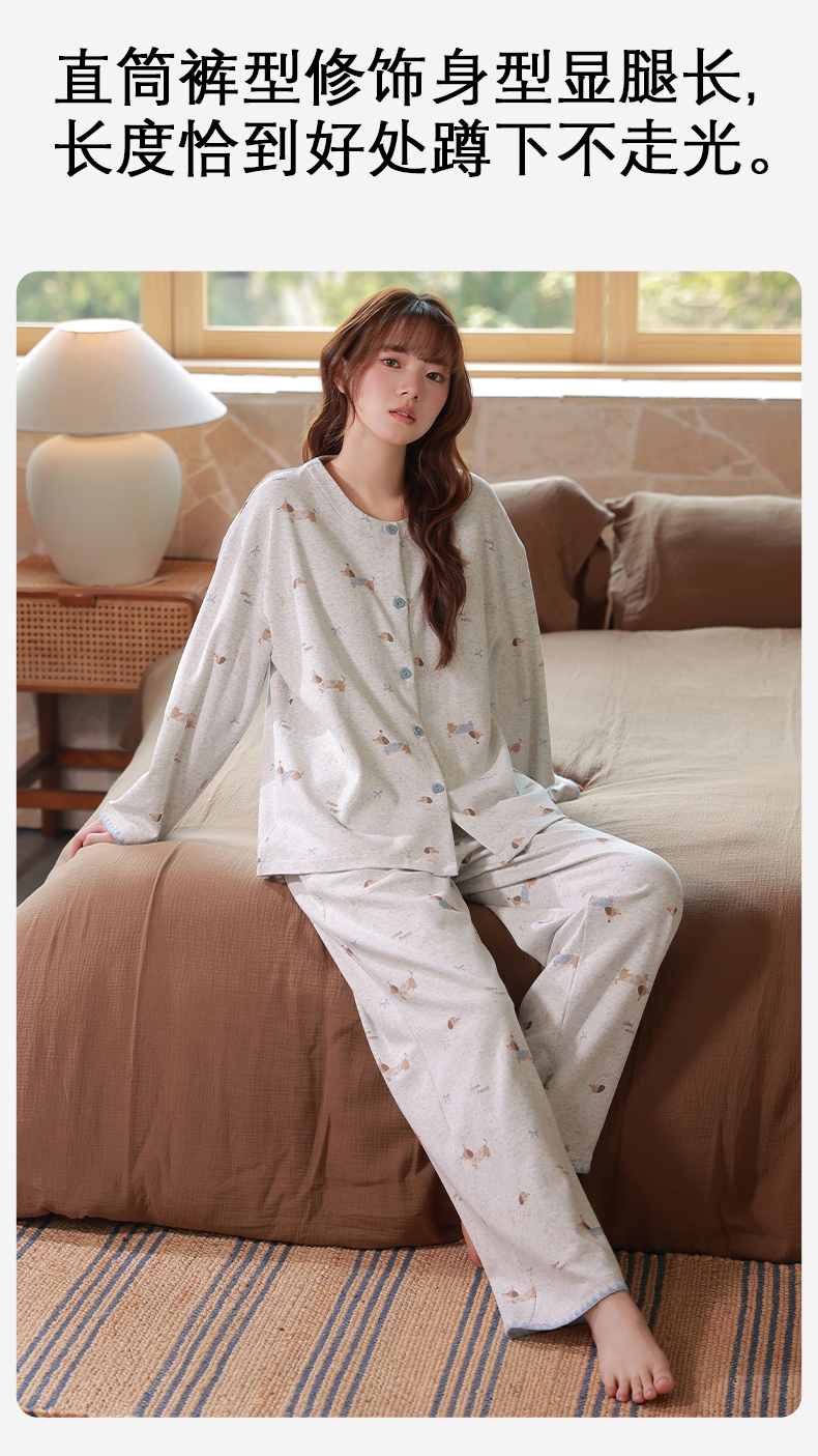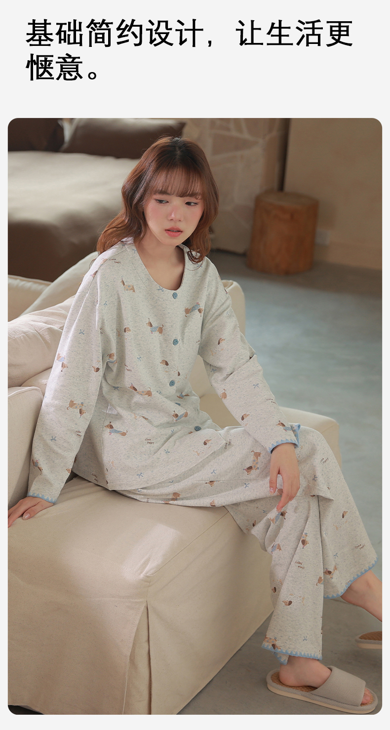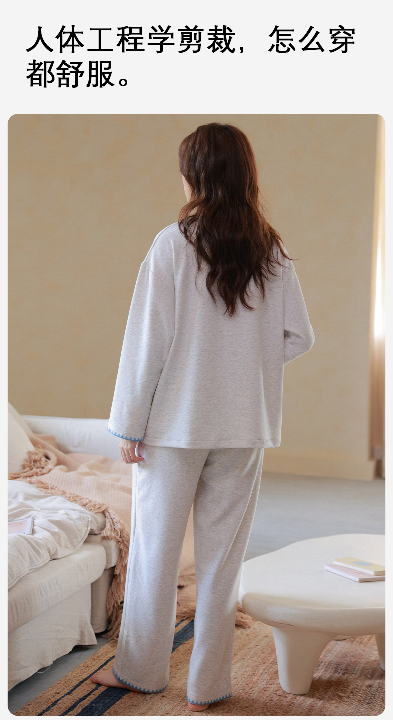 爱帝女式圆领开衫长袖家居服