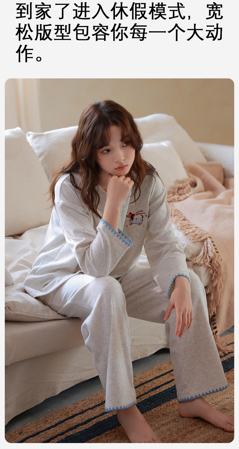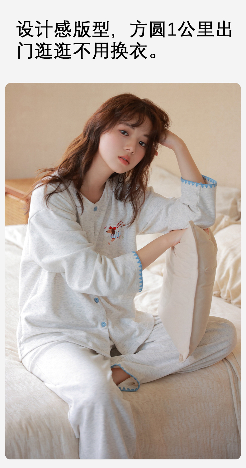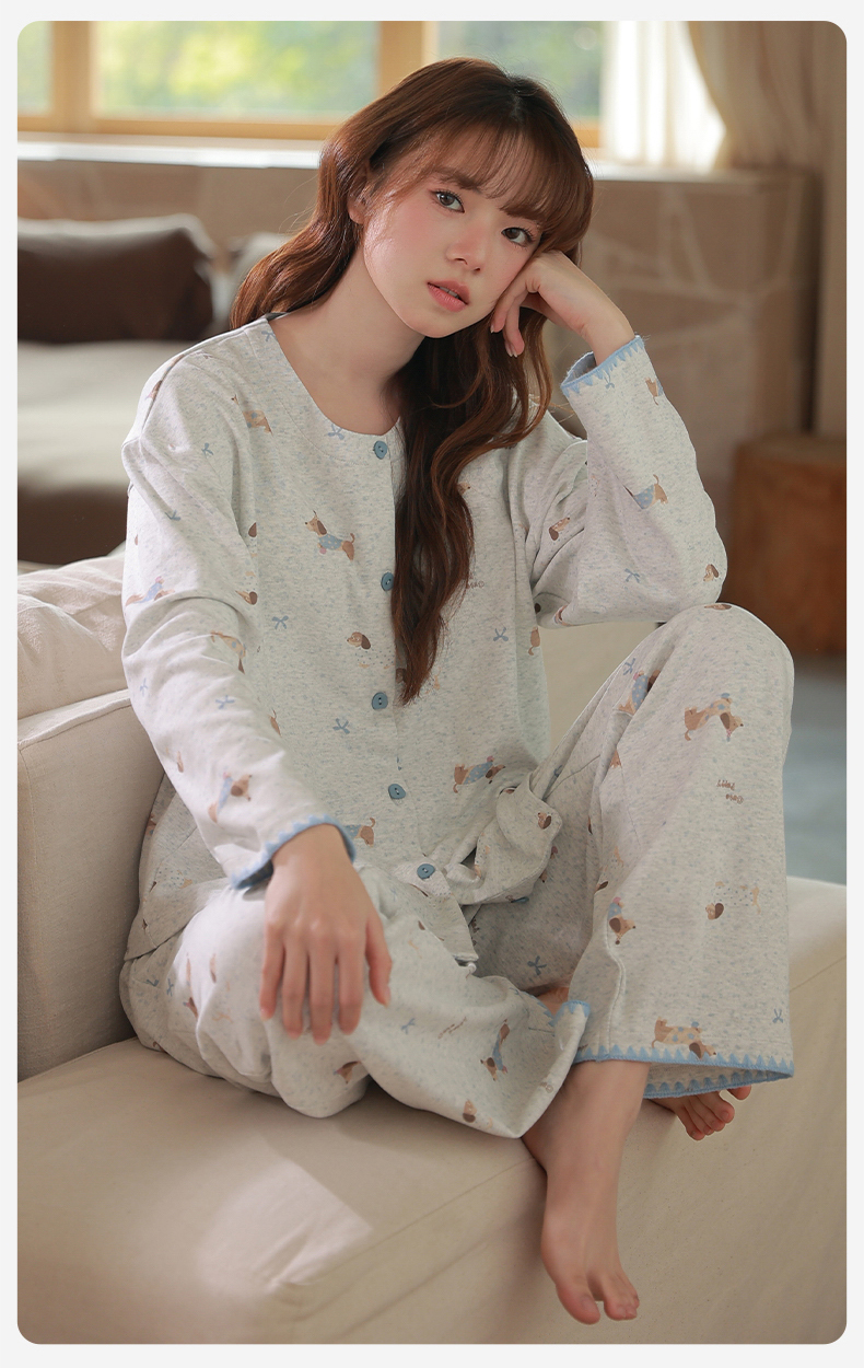 爱帝女式圆领开衫长袖家居服