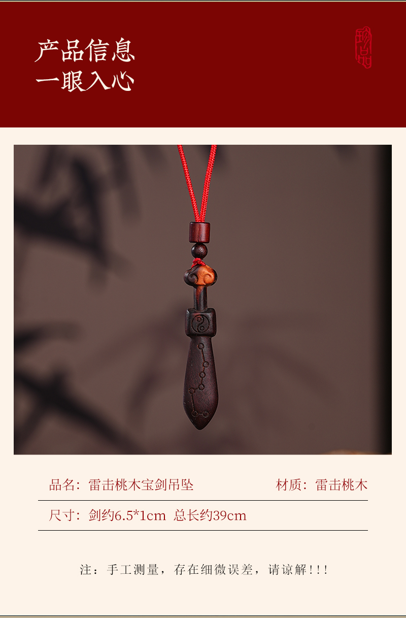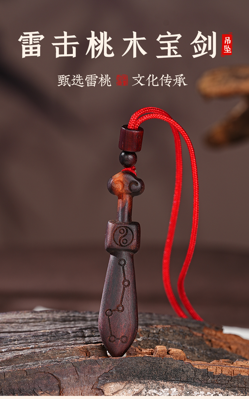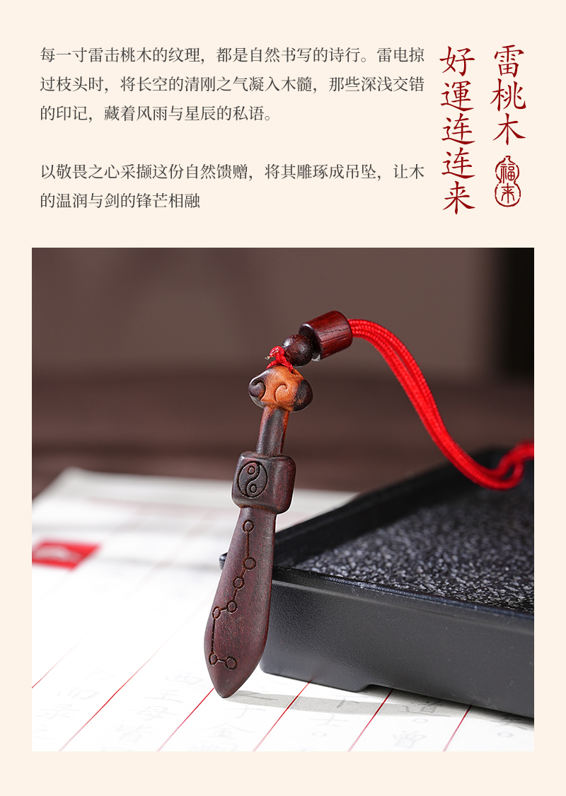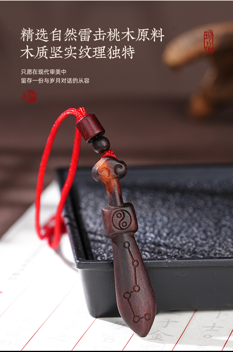 天然雷击桃木北斗七星剑吊坠木质吊坠精工雕刻
