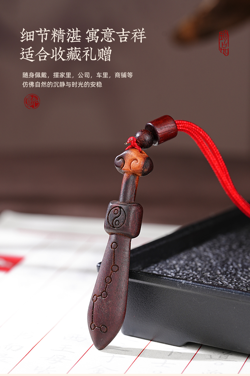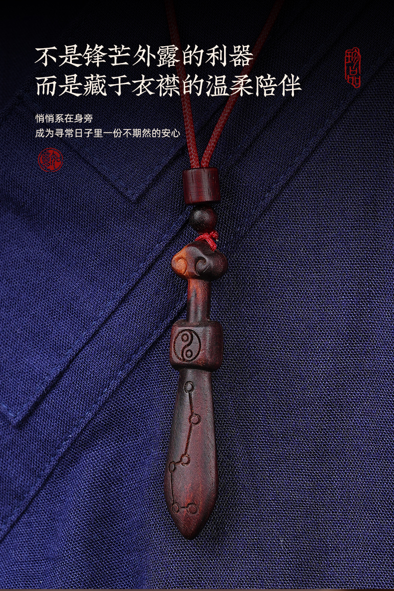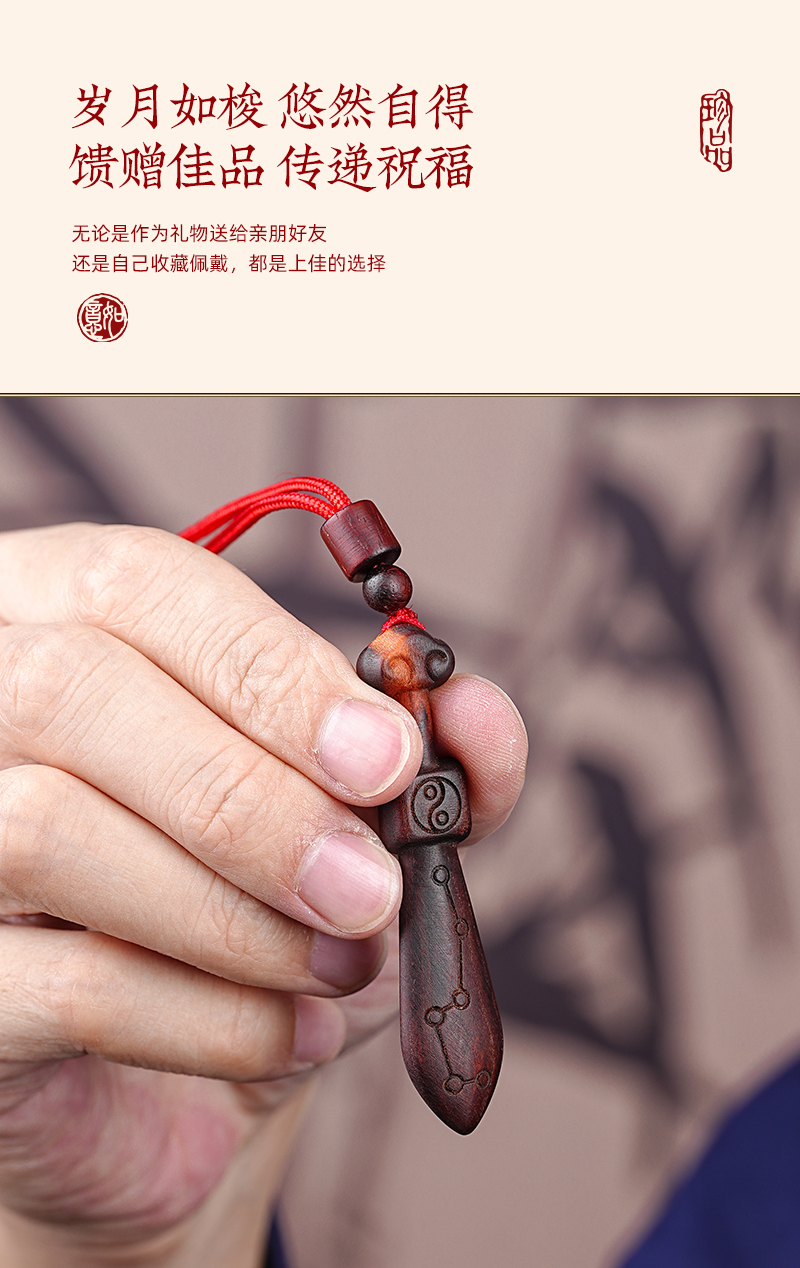 天然雷击桃木北斗七星剑吊坠木质吊坠精工雕刻
