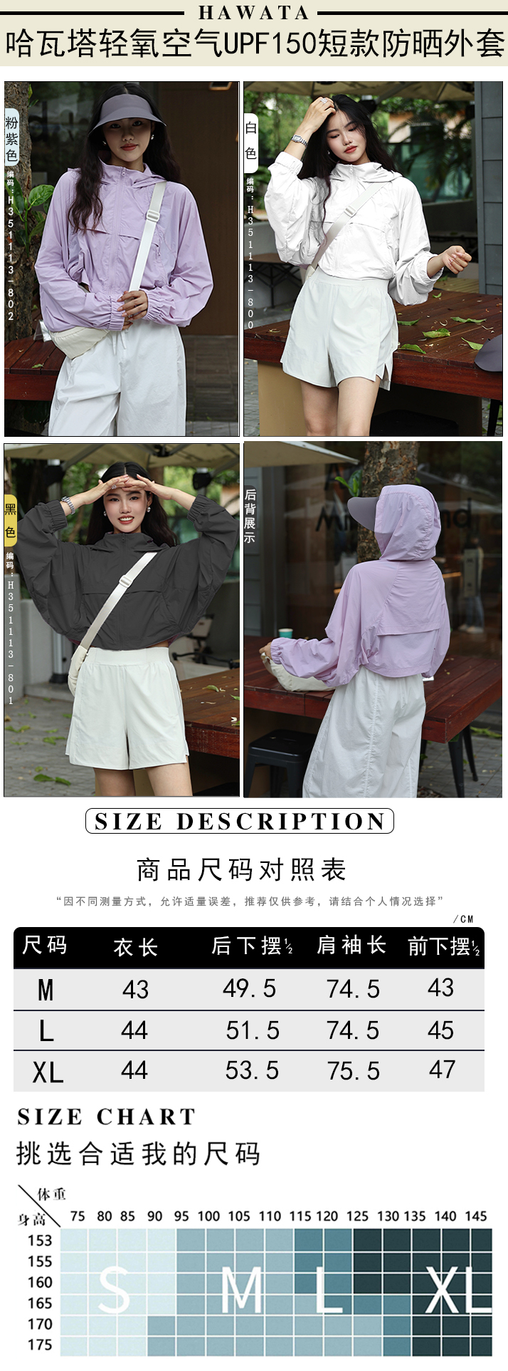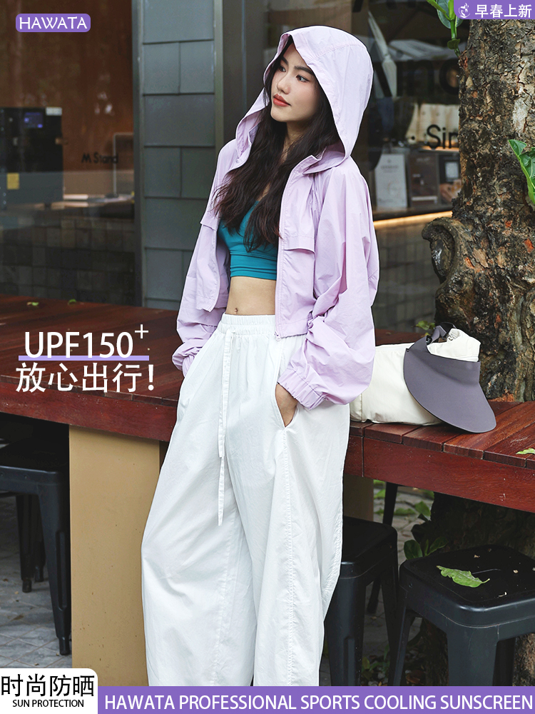 哈瓦塔轻氧空气UPF150短款防晒外套