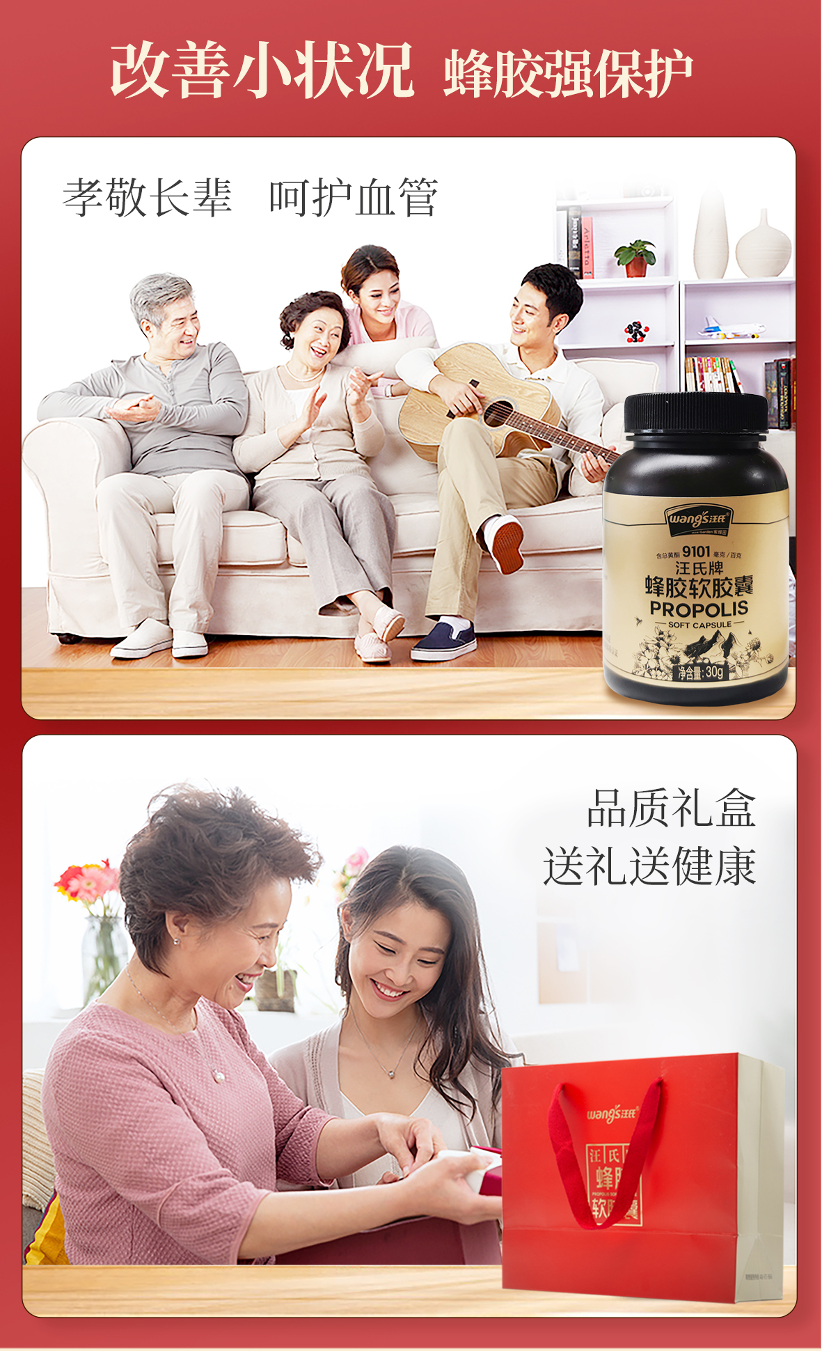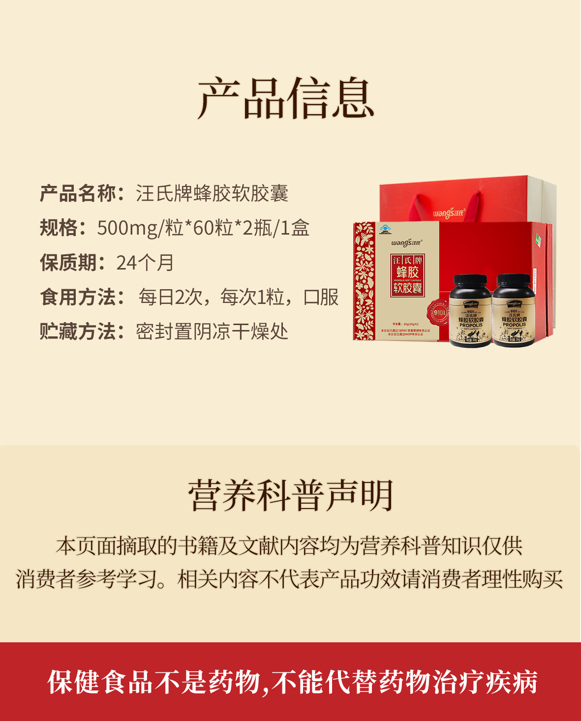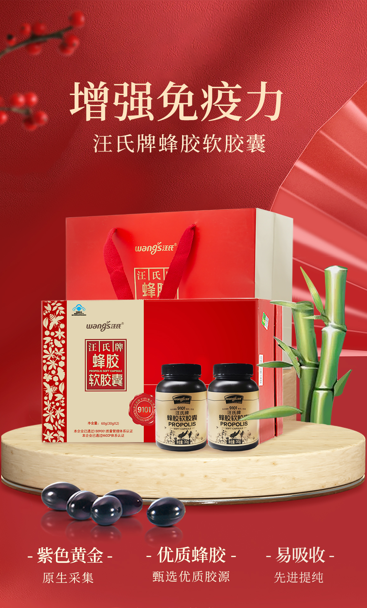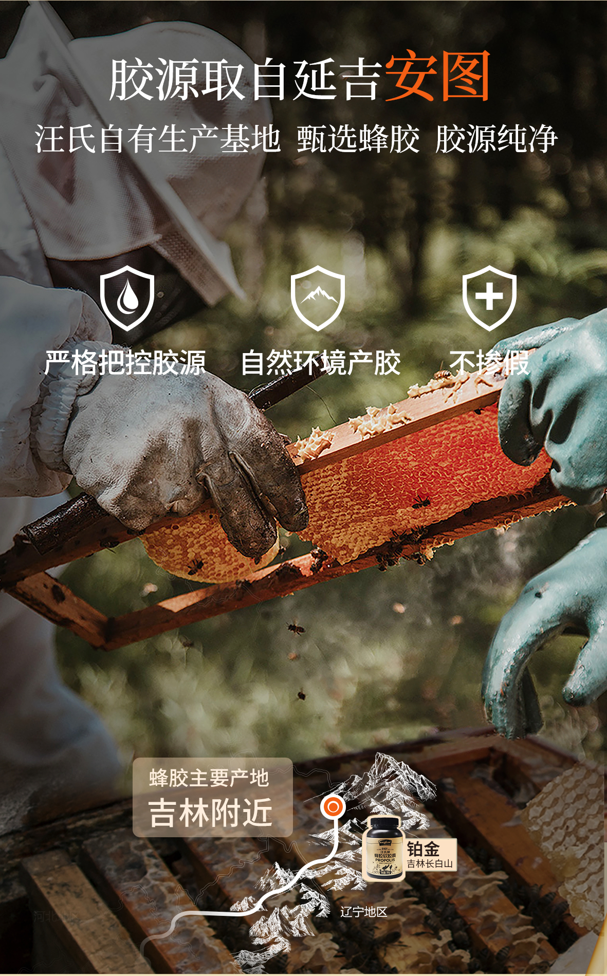 铂金蜂胶 500mg/粒*60粒*2瓶 汪氏蜂胶
