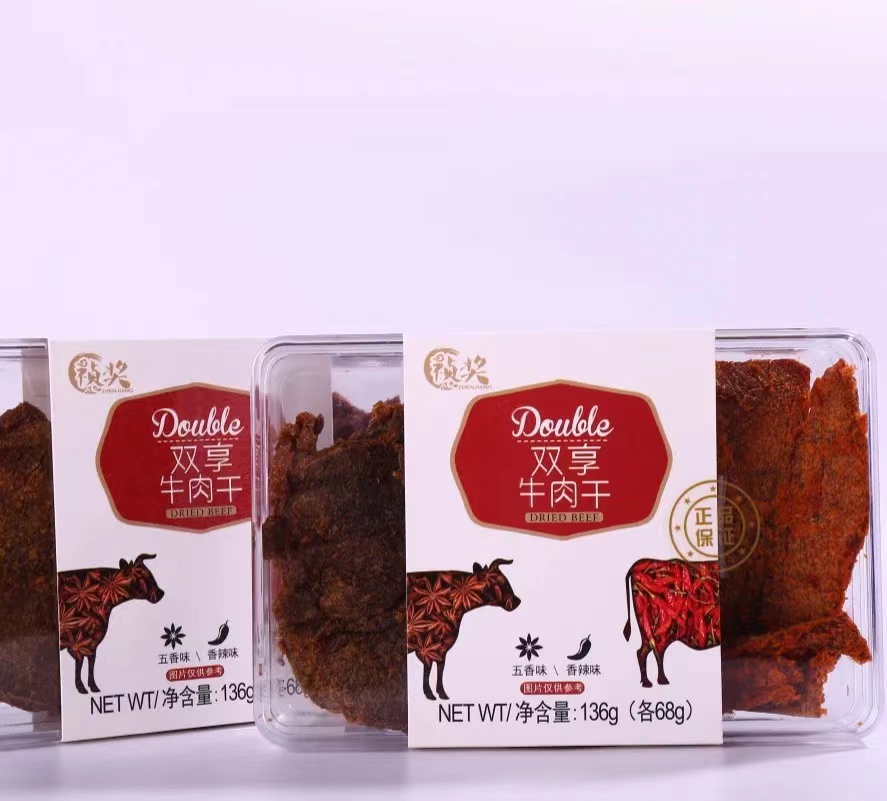 祯奖双享牛肉干 五香沙爹香辣手撕牛肉干 1盒2个口味 双重口味 136g 五香味+香辣味 两种包装随机发货