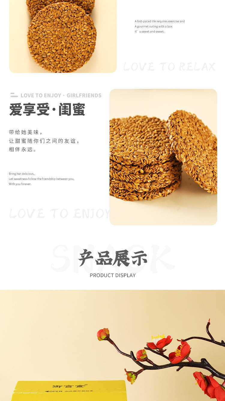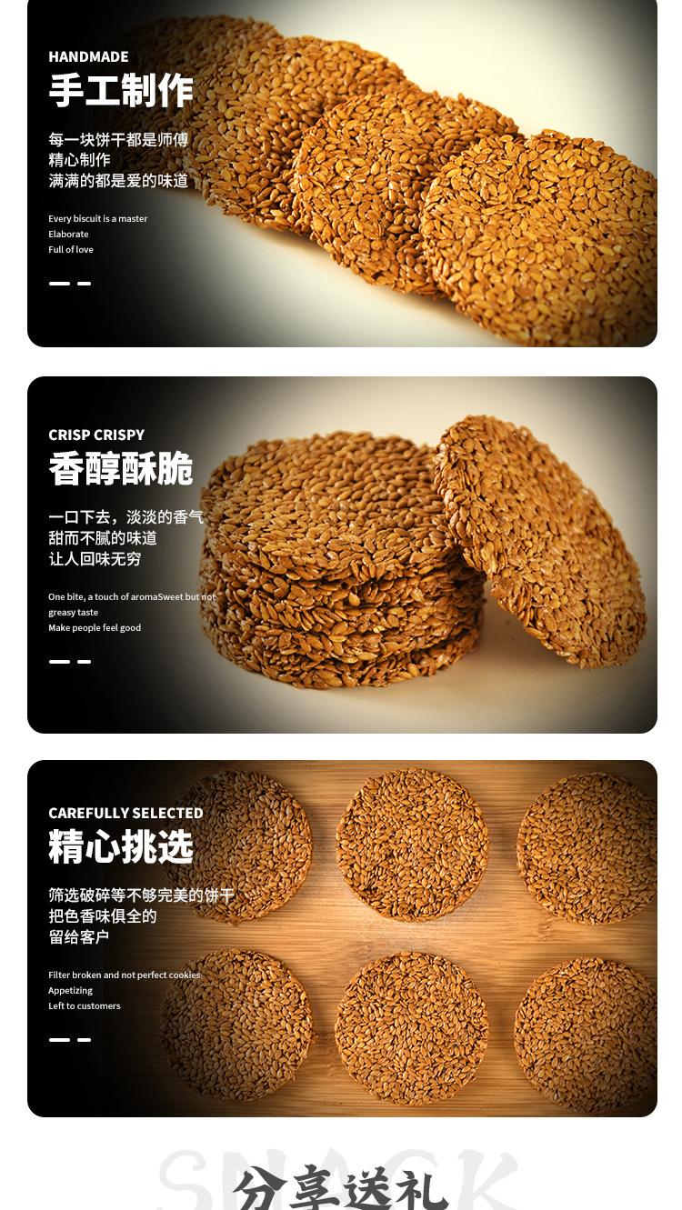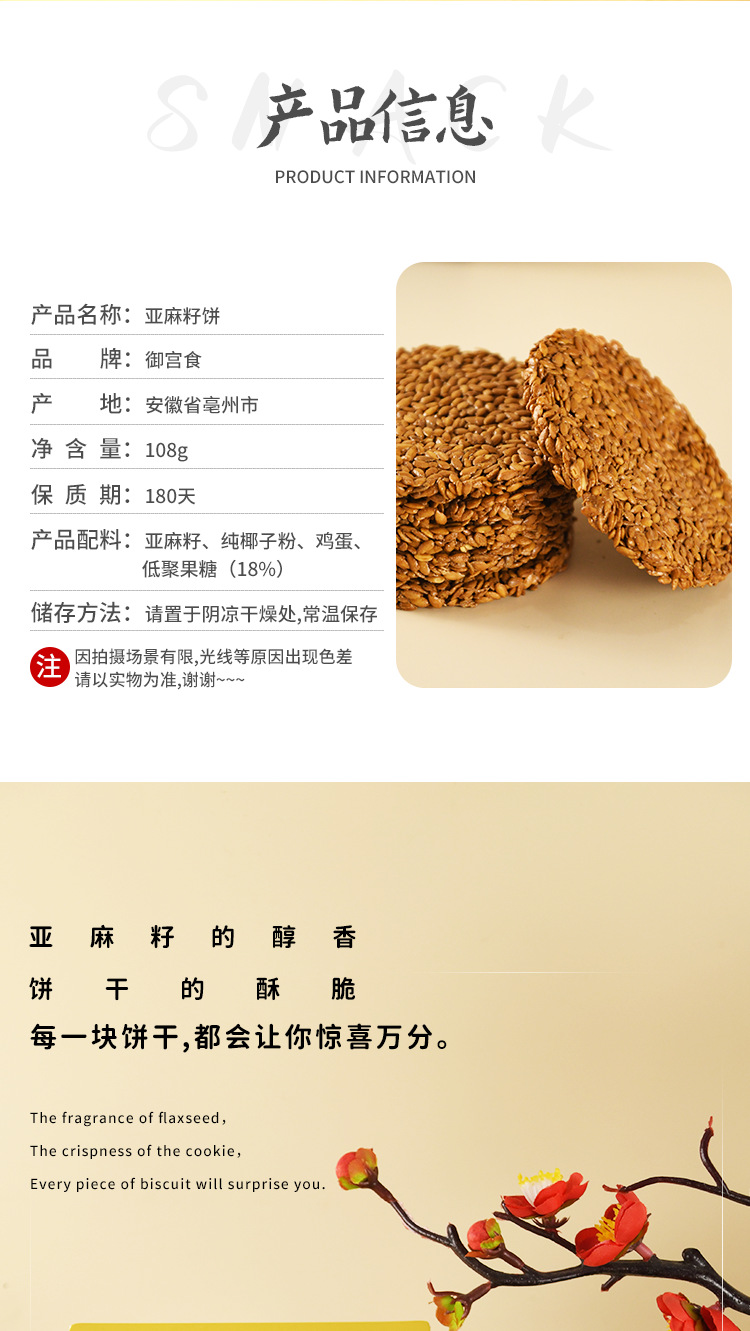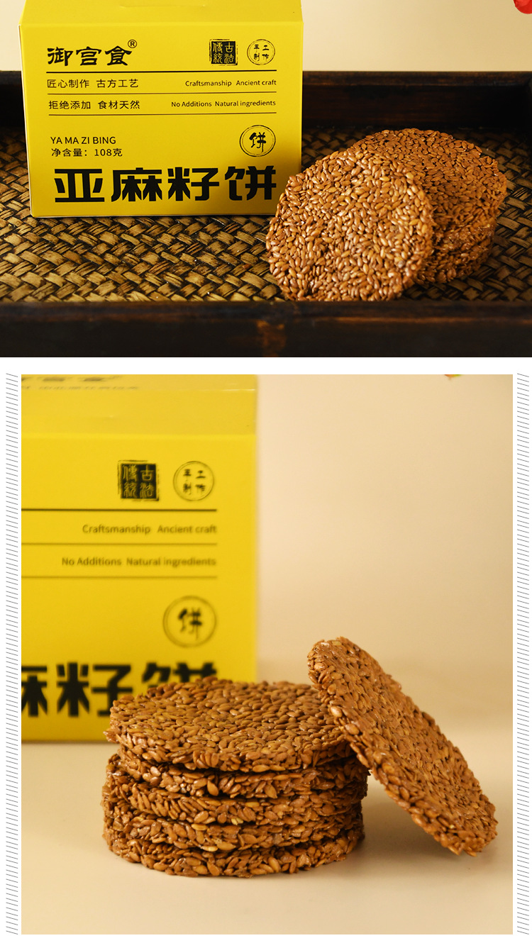 【手工制作!御宫食亚麻籽饼】古方工艺天然食材亚麻籽饼干,香醇酥脆甜而不腻的味道让人回味无穷,办公室休闲零食膳食纤维0蔗糖代餐薄脆Y